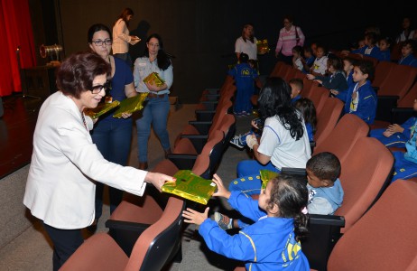 Depois do espetáculo musical ser apresentado e a visita inesperada do Saci Pererê, pacotes dourados começaram a ser distribuídos e os alunos ficaram animados. Douglas Silva de oito anos, amou o presente: um livro. “Eu gosto muito de ler e esse livro tem uma bruxa. Acho que a história deve ser bem legal”, conta.