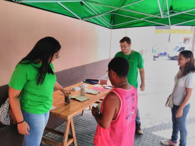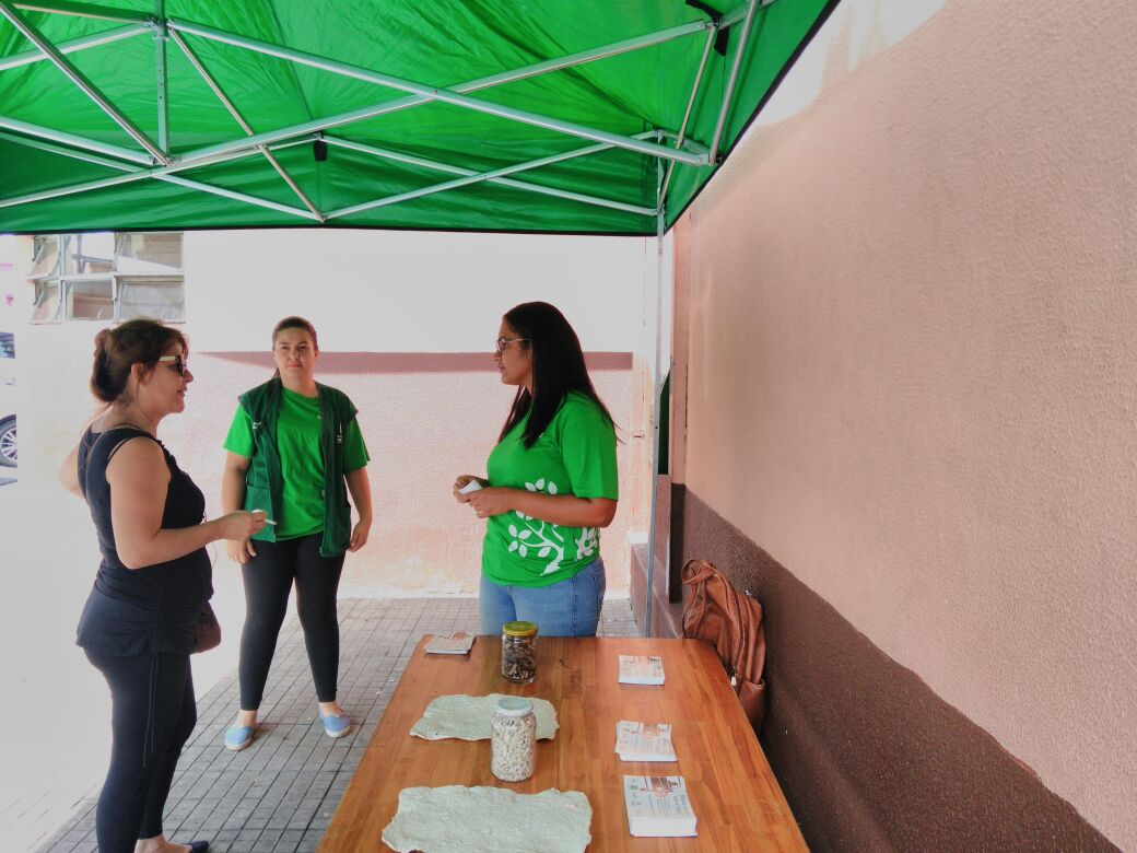 Além disso, uma exposição foi montada do lado externo do Mercado Municipal, na qual as pessoas puderam conhecer o produto final do processo de reciclagem de uma bituca, que serve de matéria básica (celulose) para a produção de papéis.