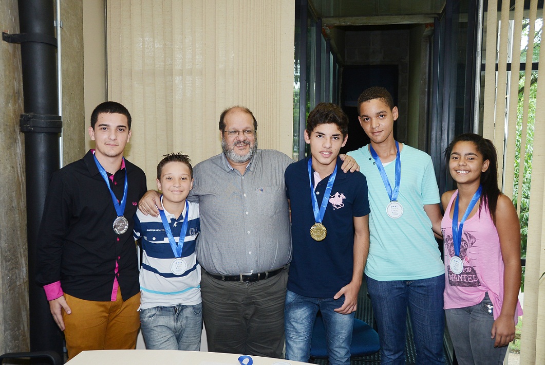 Alunos da rede municipal de ensino receberam, nesta semana, as medalhas pela participação na XVII Olimpíada de Astronomia e Astronáutica. Foram contemplados estudantes das escolas “Leonor Pinto Tomaz”, “Duljara Fernandes de Oliveira”, “Getúlio Vargas”, “Achilles de Almeida”, “Matheus Maylasky” e “Luiz Almeida Marins”.