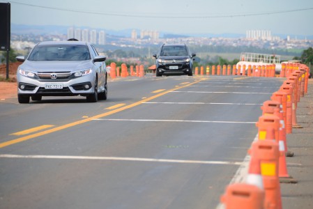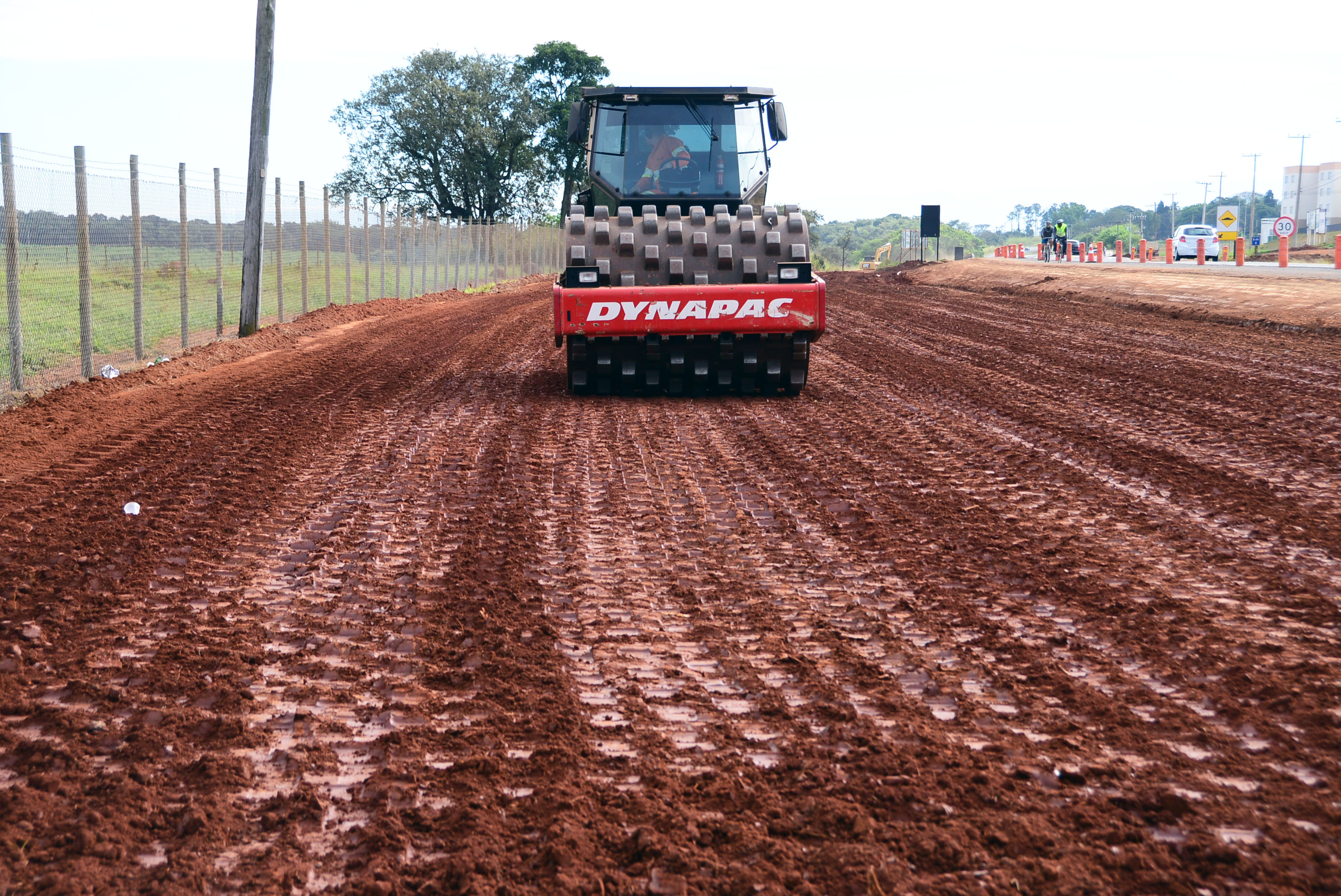 O novo dispositivo de acesso e retorno está previsto para ser concluído até o final de setembro. Atualmente, simultaneamente às máquinas e caminhões que retiram terra de um lado da estrada, nas margens do sentido inverso, compactadores preparam a base do solo para receber o asfalto. Em outro trecho, equipes de topografia fazem as medições.
