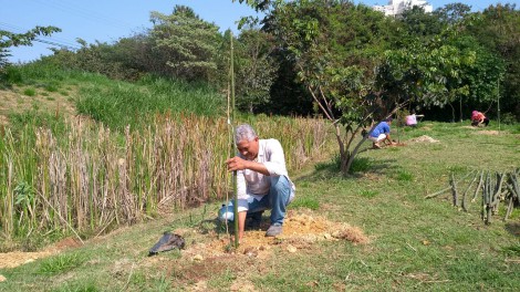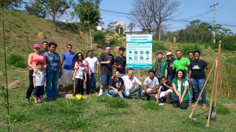 Crianças, jovens e adultos participaram na manhã deste sábado (14) de um plantio de 75 árvores numa área pública da rua Lituânia, ao lado do campo de futebol, no Jardim Guadalajara. O local possui uma nascente considerada modelo pela sua peculiar situação de conservação e aspectos relevantes para a Educação Ambiental. O espaço ganhou mudas de ipês, pau-viola, aroeira, pitanga, goiaba, entre outras espécies nativas e frutíferas.