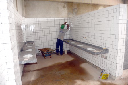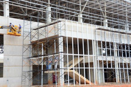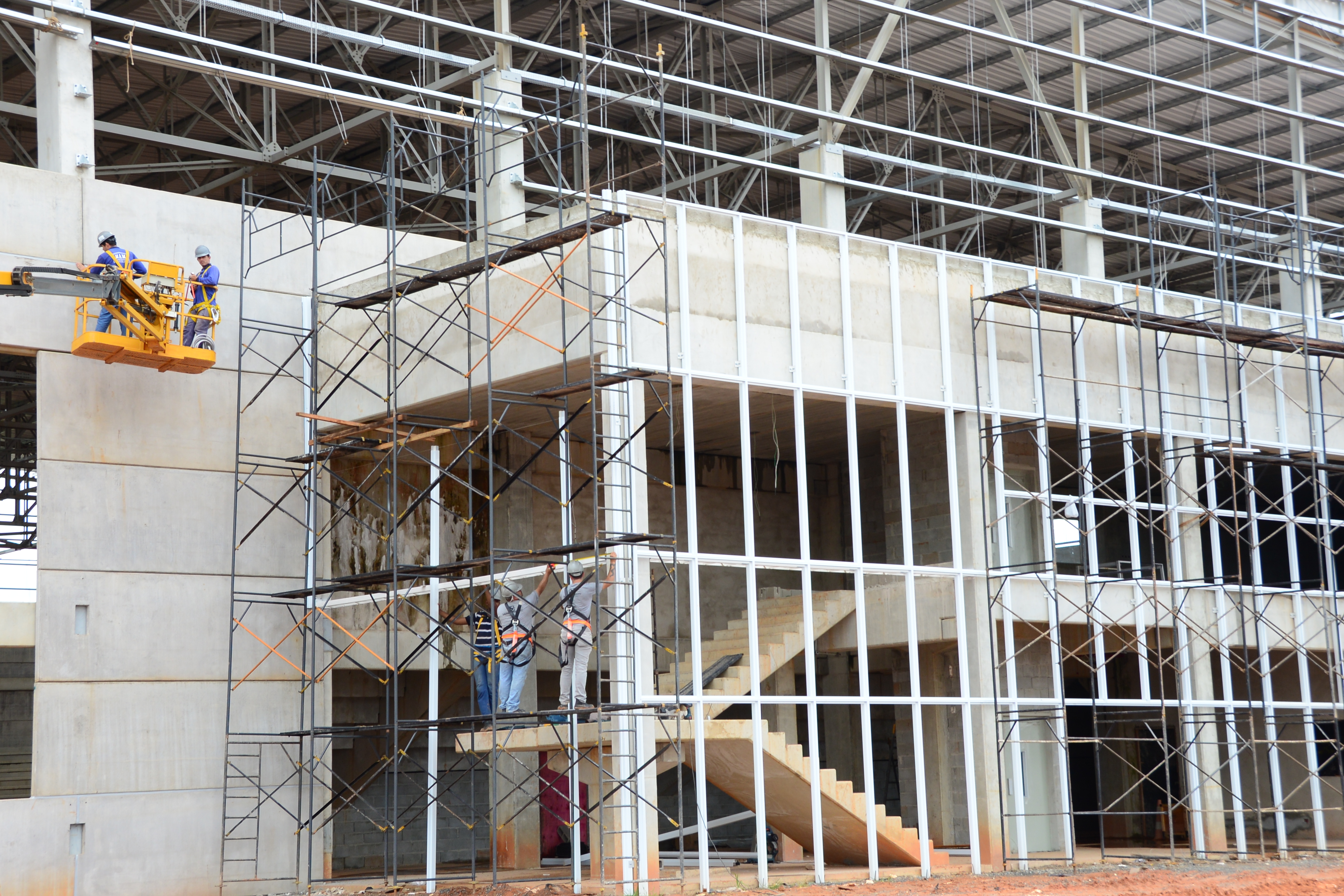 De acordo com o engenheiro Antônio Carlos Incau de Almeida, da Progredior, empresa responsável pela construção da Arena, serão colocados 1.800 m², o equivalente a 350 peças. Também estão colocadas as eletrocalhas por onde vão passar os cabos de para iluminação e fornecimento de energia elétrica para Arena e a estrutura de esquadria está pronta para receber o vidro temperado. “Também foi concluído o revestimento de azulejo dos banheiros e os locais já receberam as respectivas divisórias de granito das áreas sanitárias e das bancadas de lavatório”, explicou.