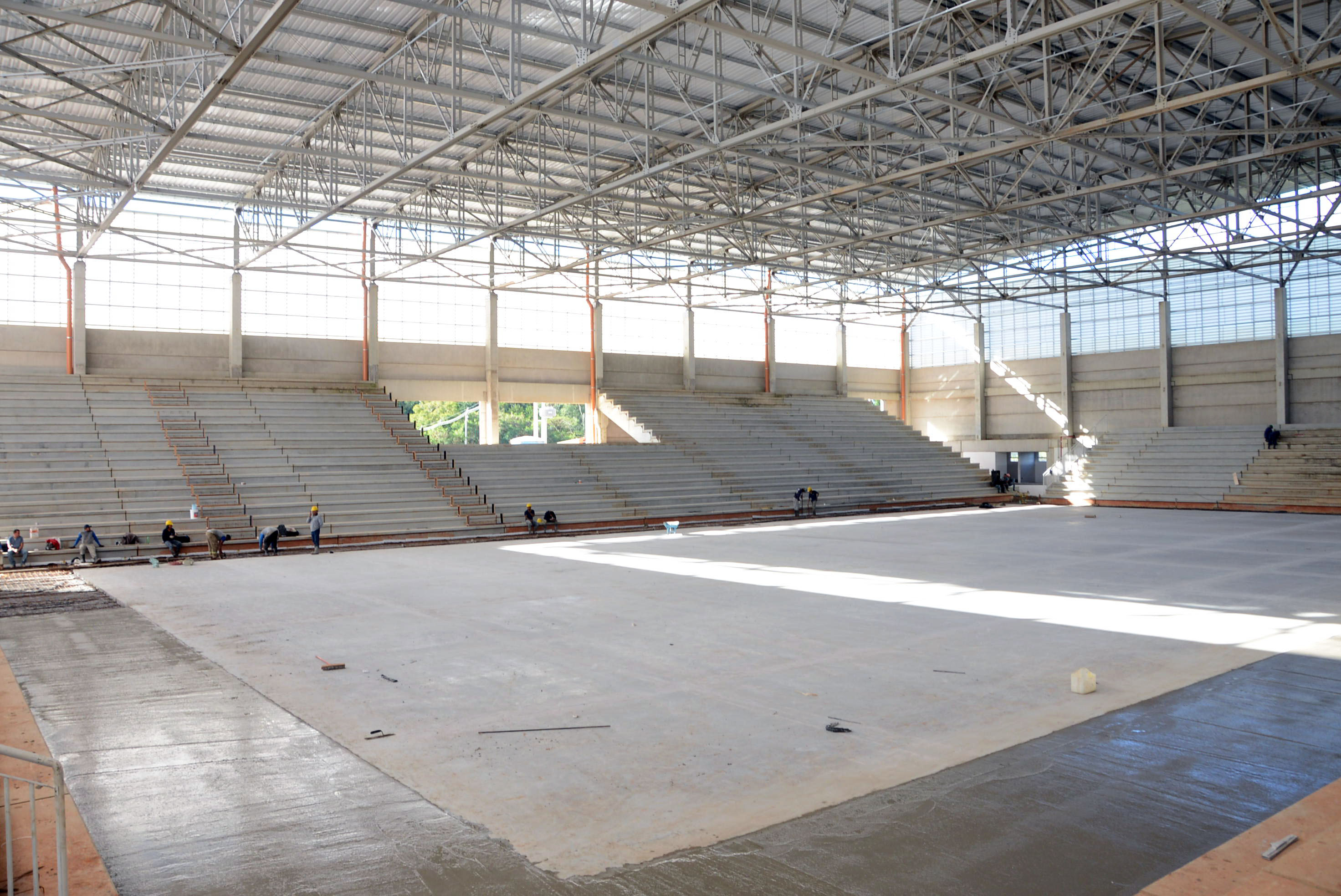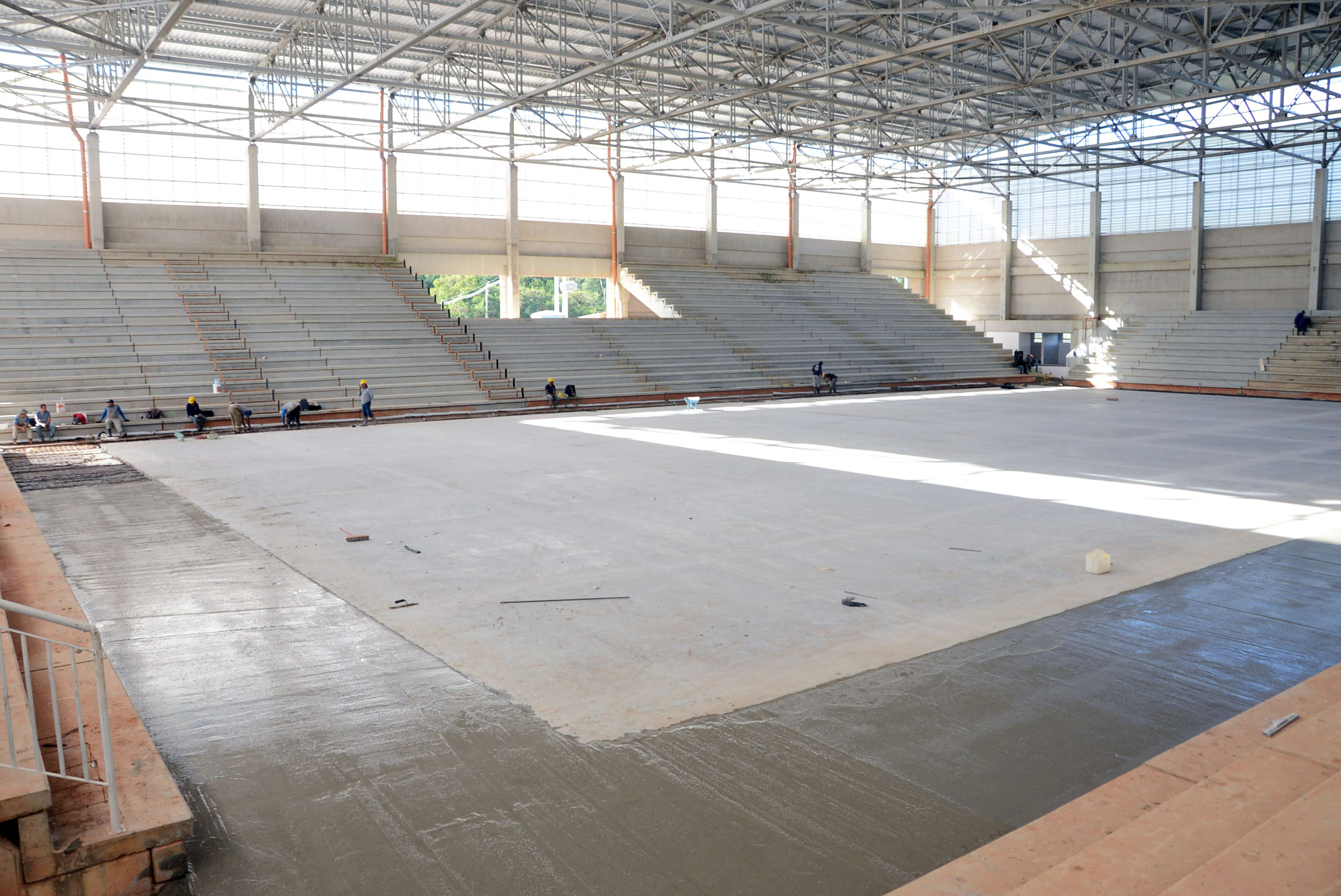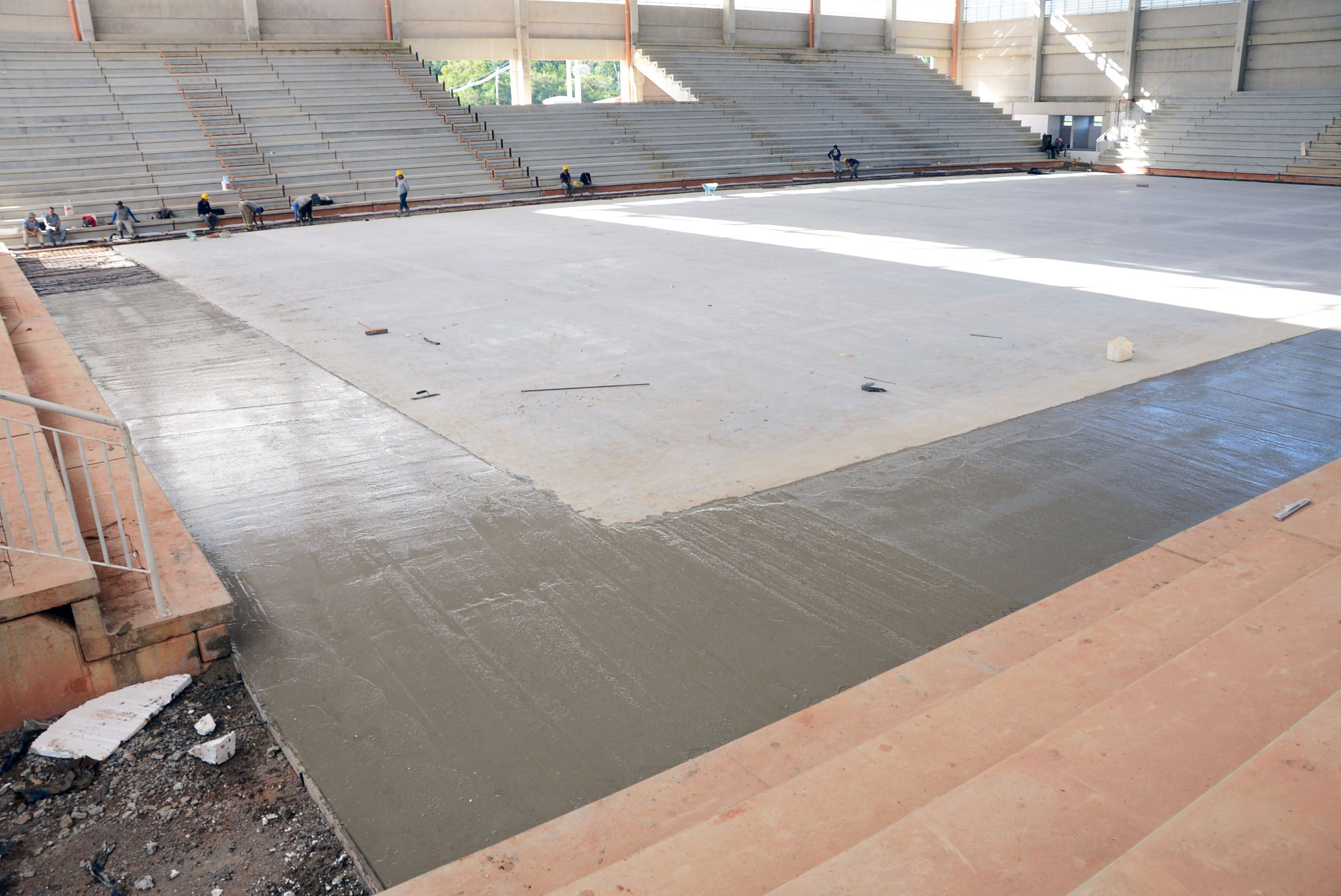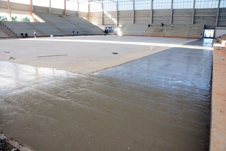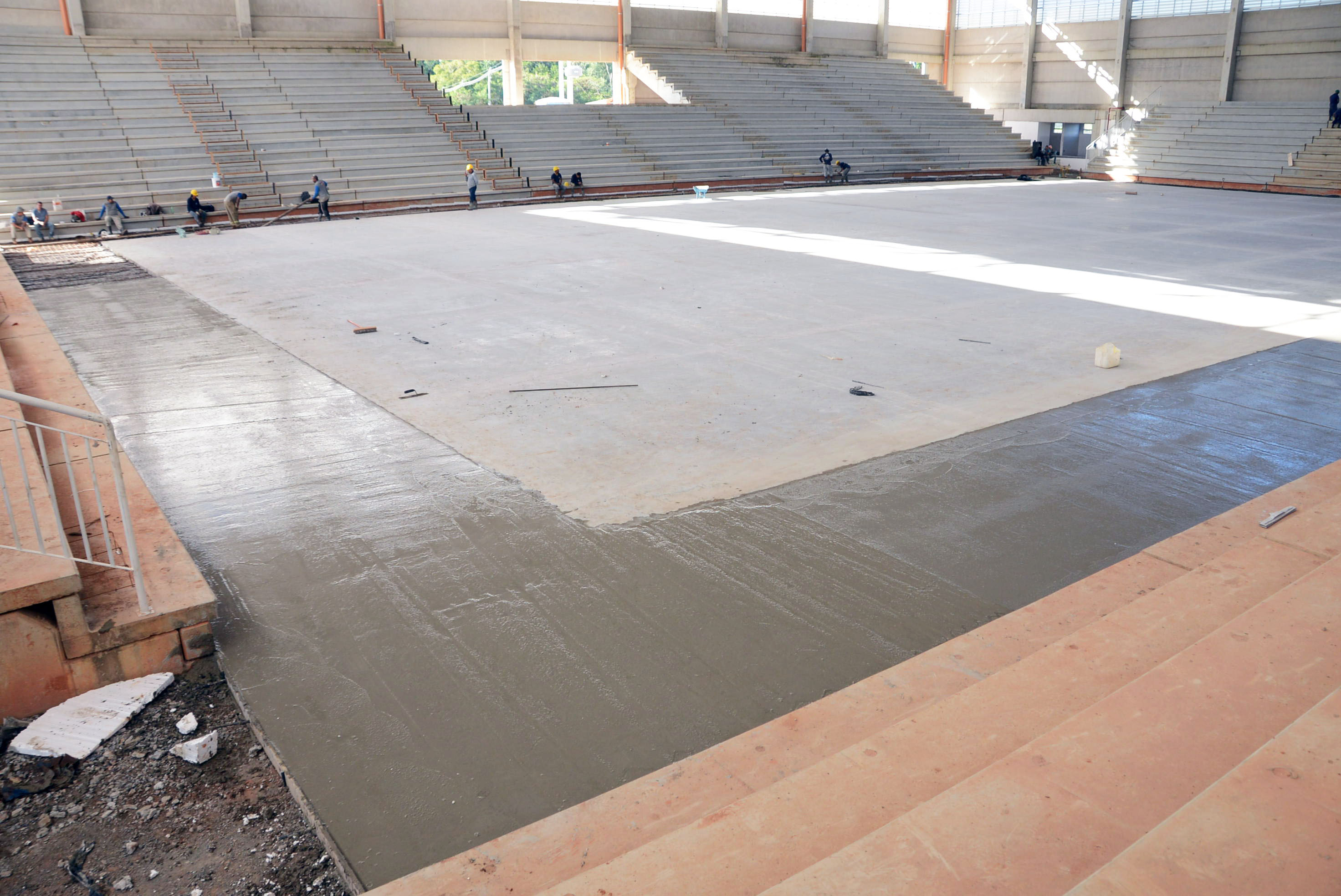 A Arena Multiúso começou a receber nesta segunda-feira (23) a concretagem no espaço entre a quadra e a arquibancada. Dois lados já haviam recebido o material e a expectativa é que todo o serviço fosse finalizado no final da tarde desta segunda-feira.
