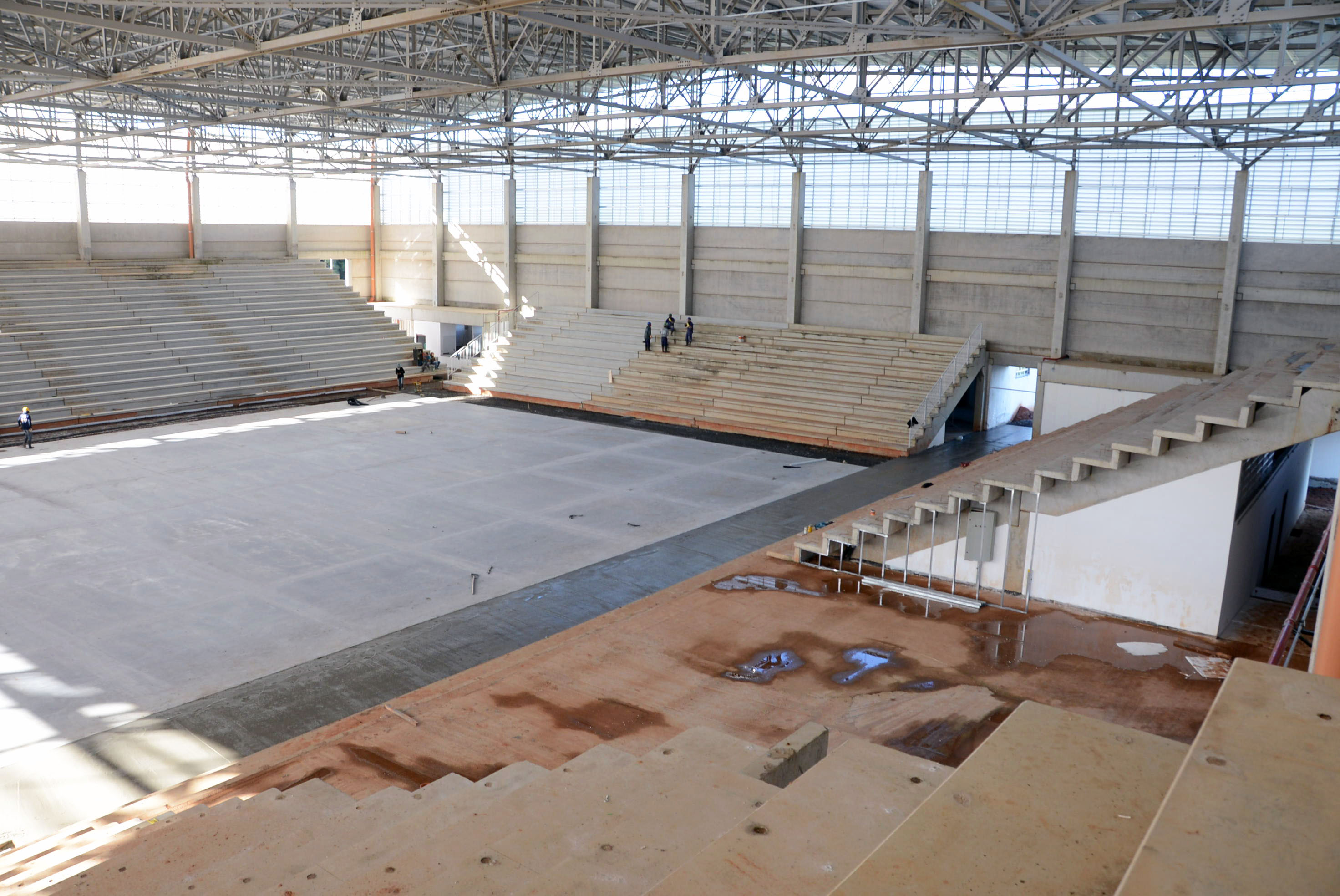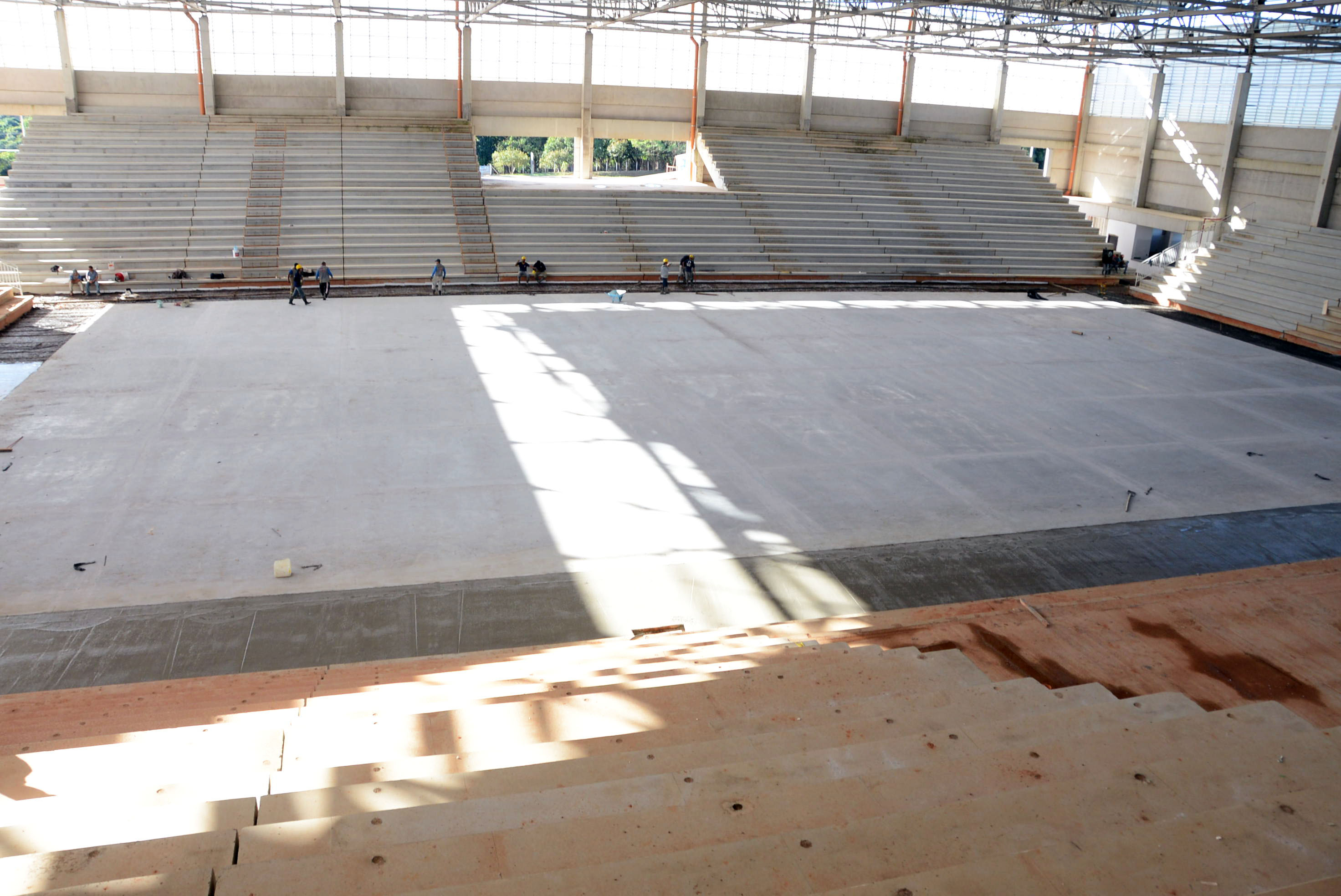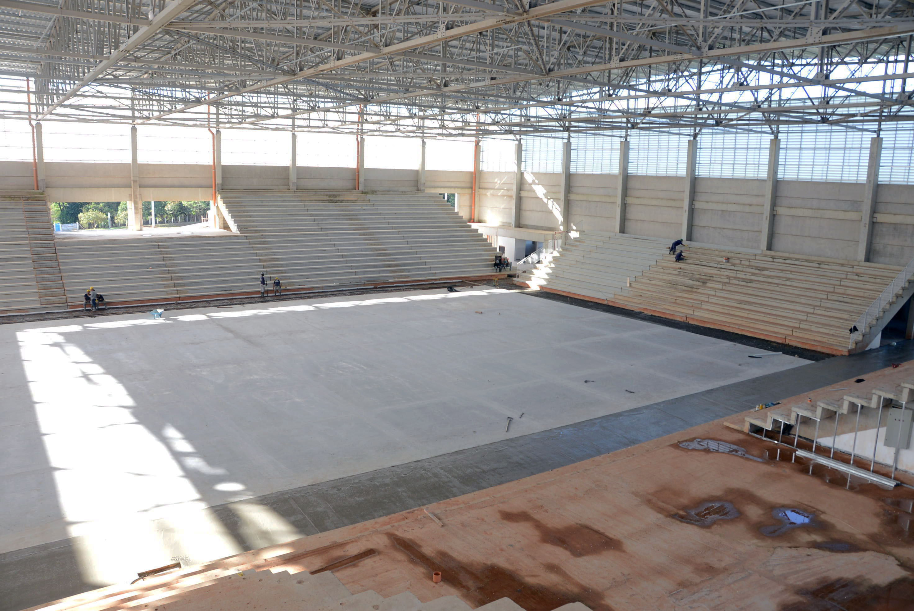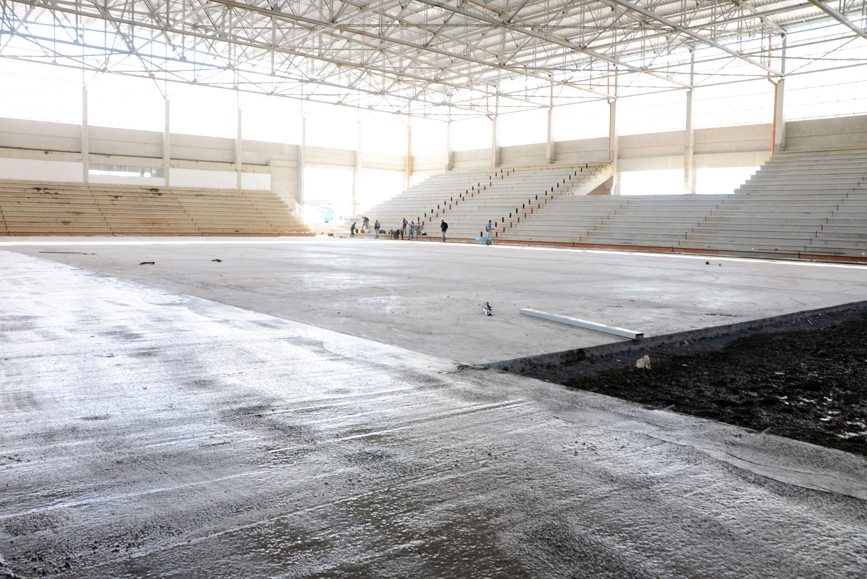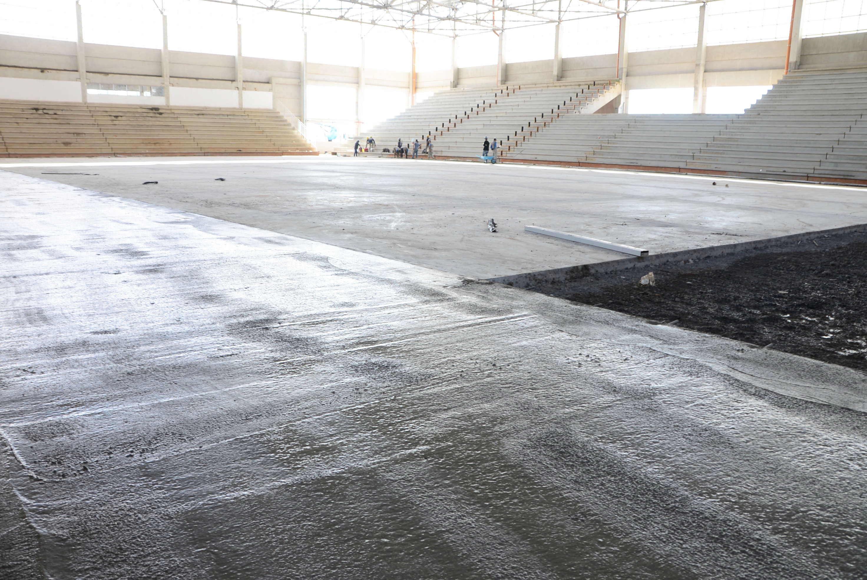 A Arena Multiúso começou a receber nesta segunda-feira (23) a concretagem no espaço entre a quadra e a arquibancada. Dois lados já haviam recebido o material e a expectativa é que todo o serviço fosse finalizado no final da tarde desta segunda-feira.