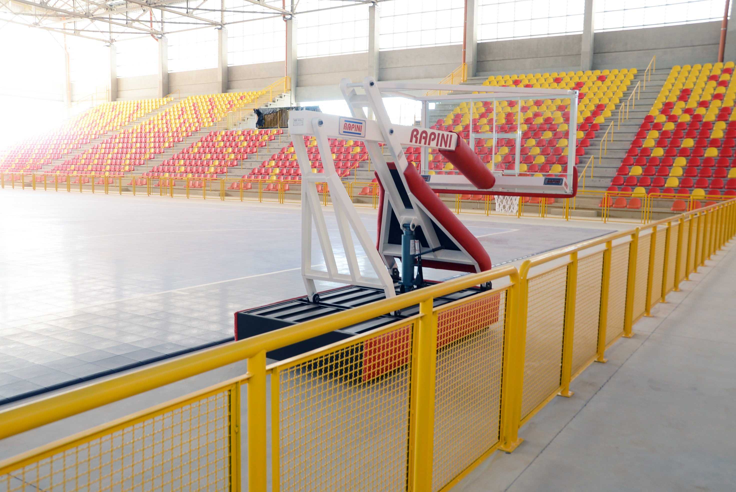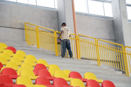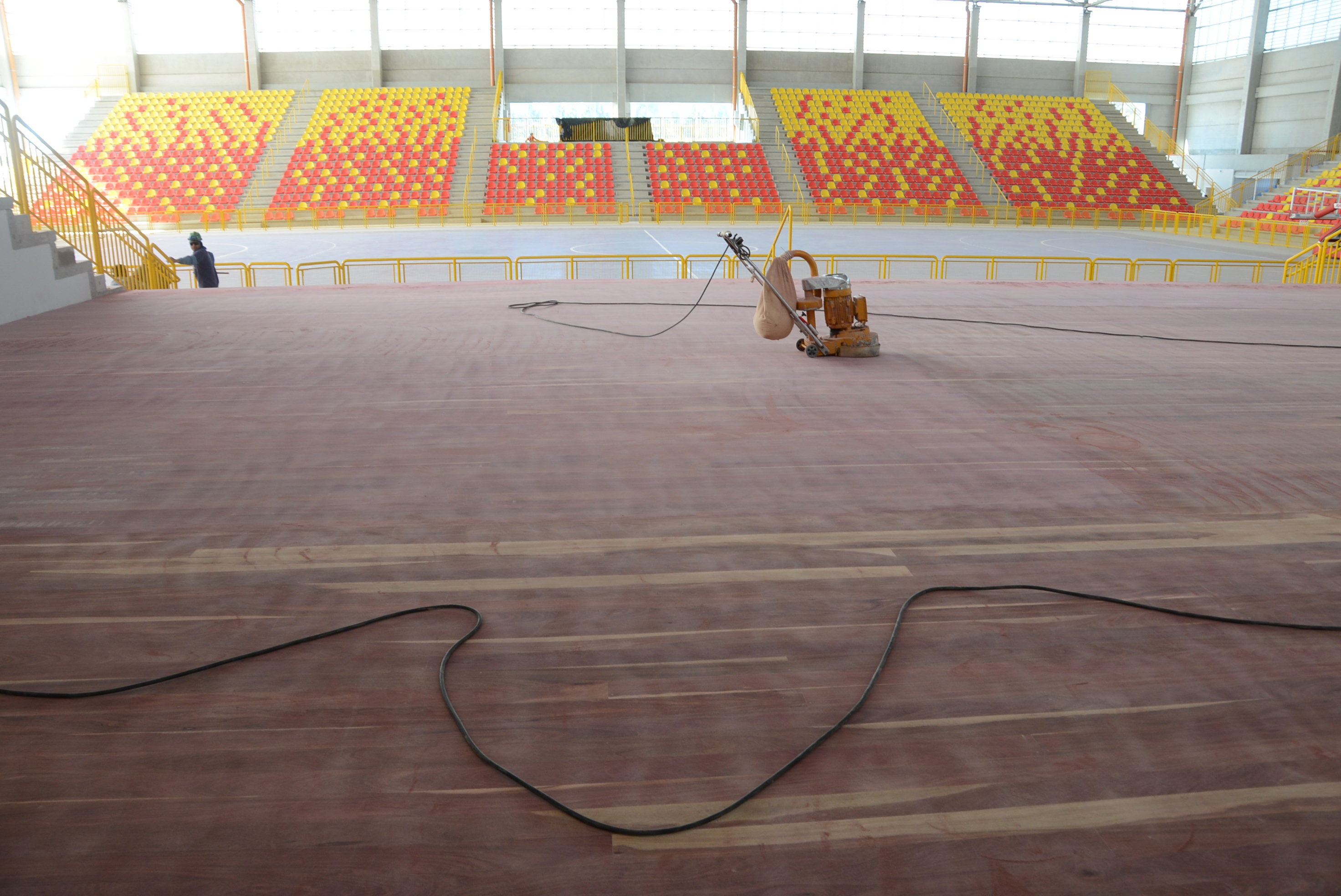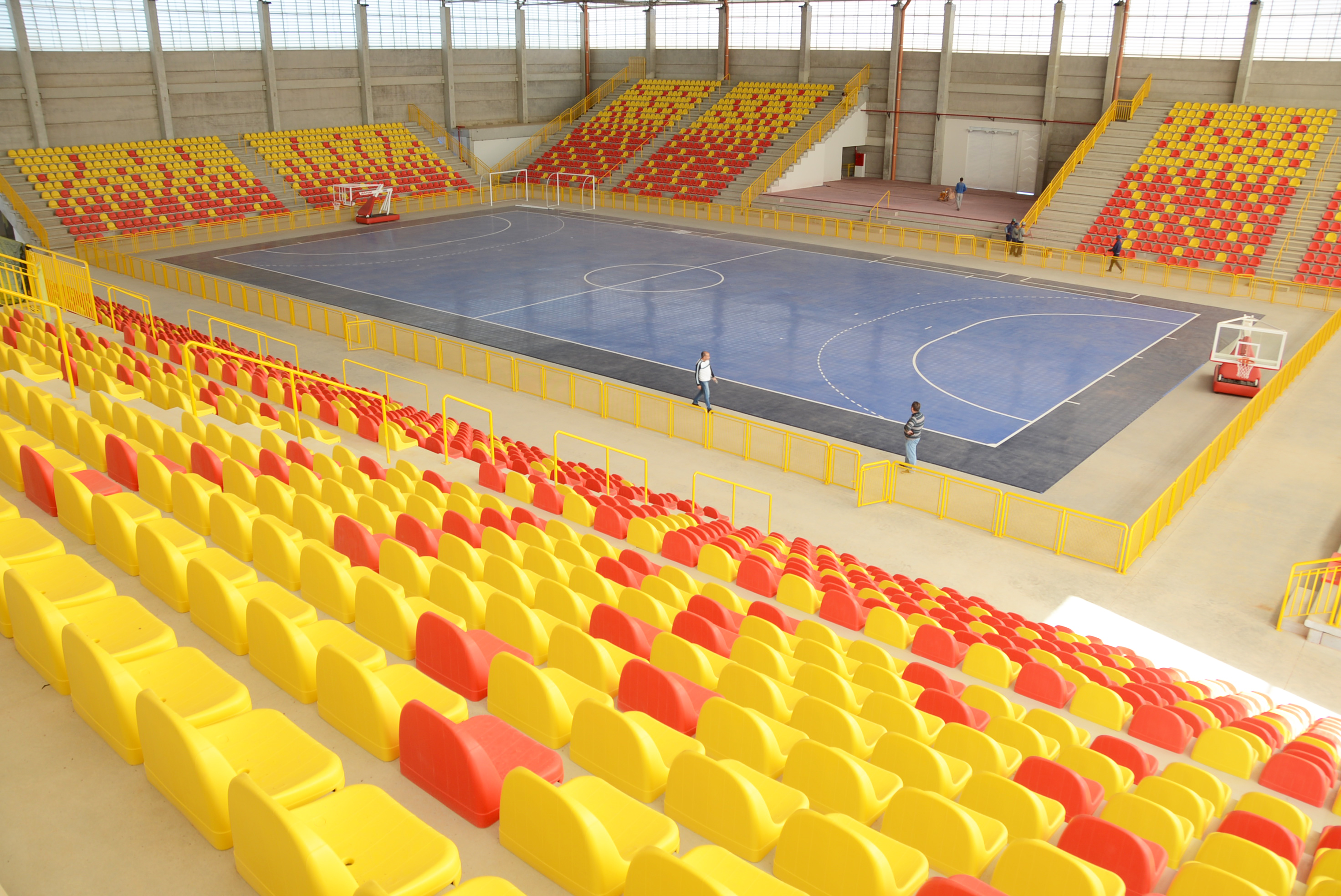 Já o revestimento colocado na quadra é o que há de mais moderno em tecnologia de superfície esportiva. A montagem não exigiu o uso de qualquer tipo de cola ou outro elemento químico. As traves para prática de futsal e handebol, assim como as tabelas de basquete, estão prontas para serem colocadas.