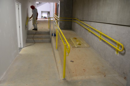 Já na parte externa, com o tempo bom, voltaram os trabalhos do estacionamento e da calçadas. A previsão de entrega é até o final deste mês, caso não ocorram mais problemas devido às condições climáticas.