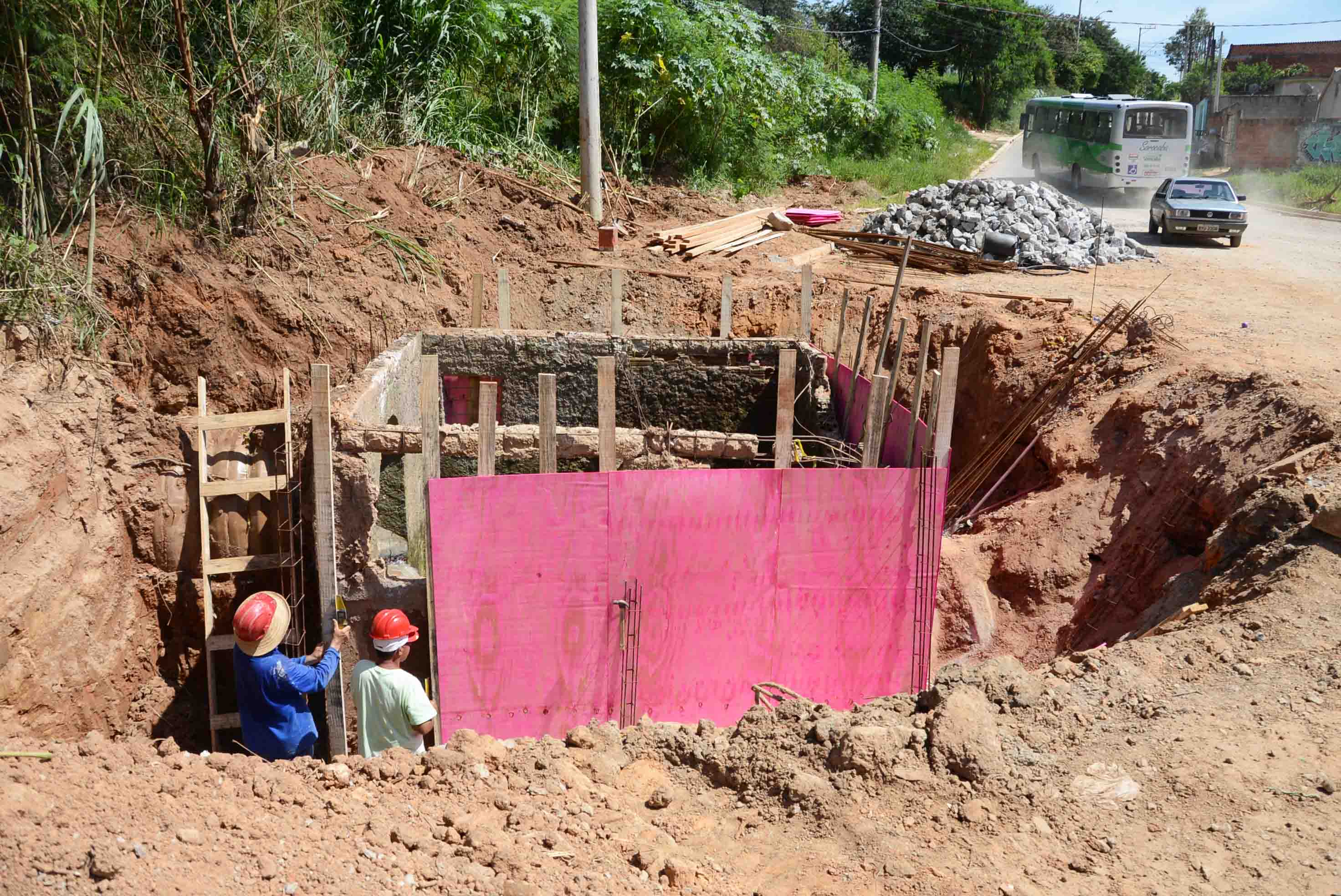 O trabalho está sendo executado num trecho de 1.530 metros da via pela empresa Atrio Construção e Incorporação Ltda. Na manhã desta quinta-feira (31), funcionários da empresa trabalhavam a construção de uma caixa coletora de esgoto.