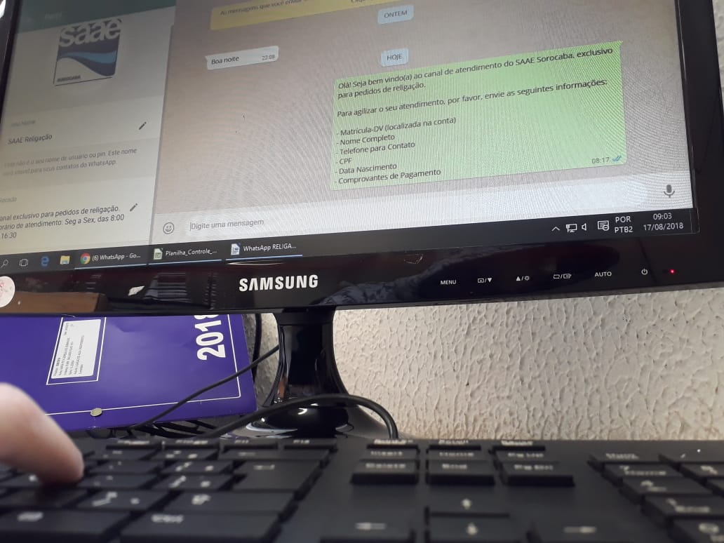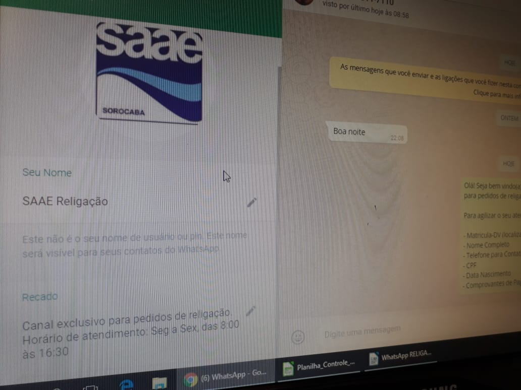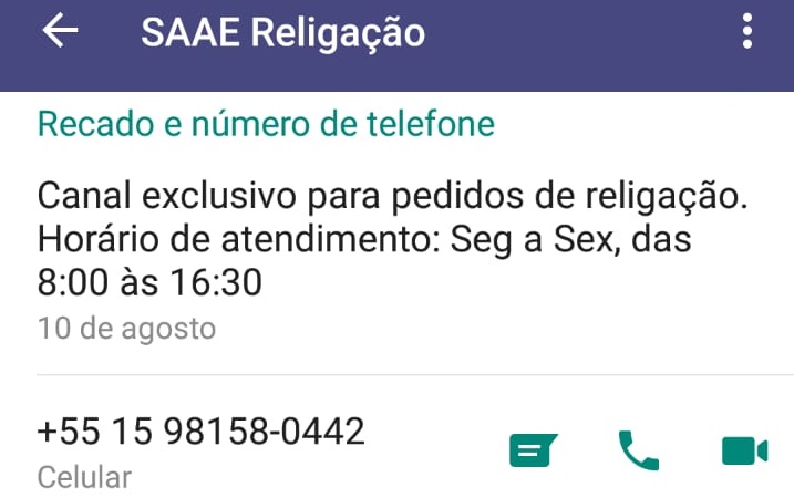 O atendimento é exclusivamente por escrito. A chefe do Departamento de Receita do Saae-Sorocaba, Dayane Gonzalez, chama a atenção para situações ocorridas nestes primeiros dias, que atrapalham o serviço. “As ligações de voz, tanto direto para o número do celular, como pelo aplicativo não são atendidas e ainda atrapalham o andamento dos demais consumidores em contato naquele mesmo momento”, explica Dayane. Há ainda quem trata do mesmo caso por mais de um número de WhatsApp, ocupando o profissional que poderia estar auxiliando outro consumidor.