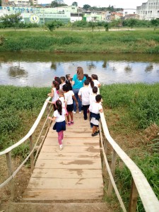 Trinta e sete alunos de duas turmas do 2o ano da Escola Municipal “Dr. Achilles de Almeida” participaram da visita monitorada. Os alunos tiveram a oportunidade de, além de ver o rio de perto, conhecer sobre o trajeto do rio, a fauna associada, o processo de despoluição do rio e também sobre os tratamentos de água e de esgoto. As crianças gostaram muito das atividades e ouviram as informações com bastante atenção e interesse.