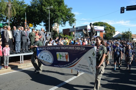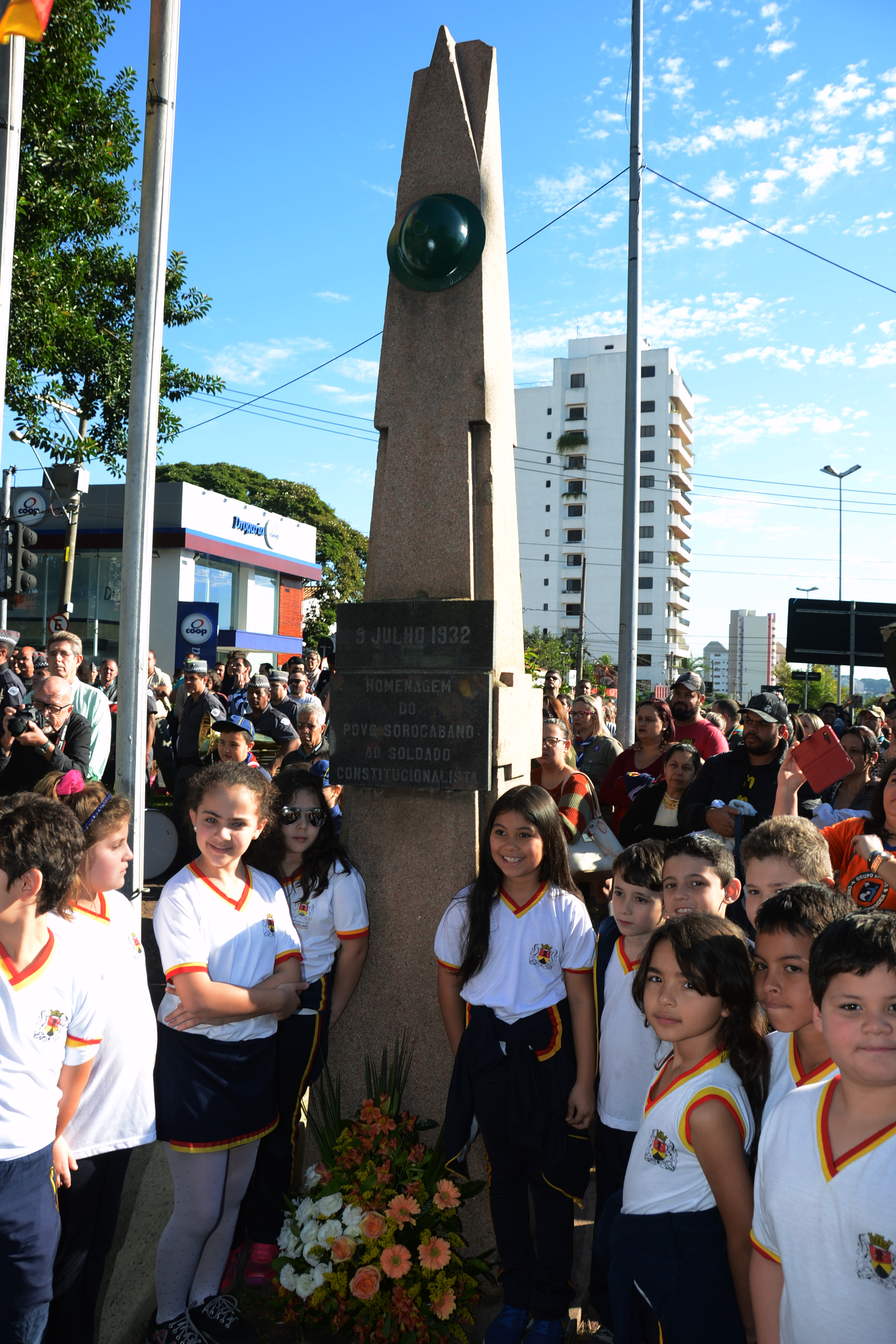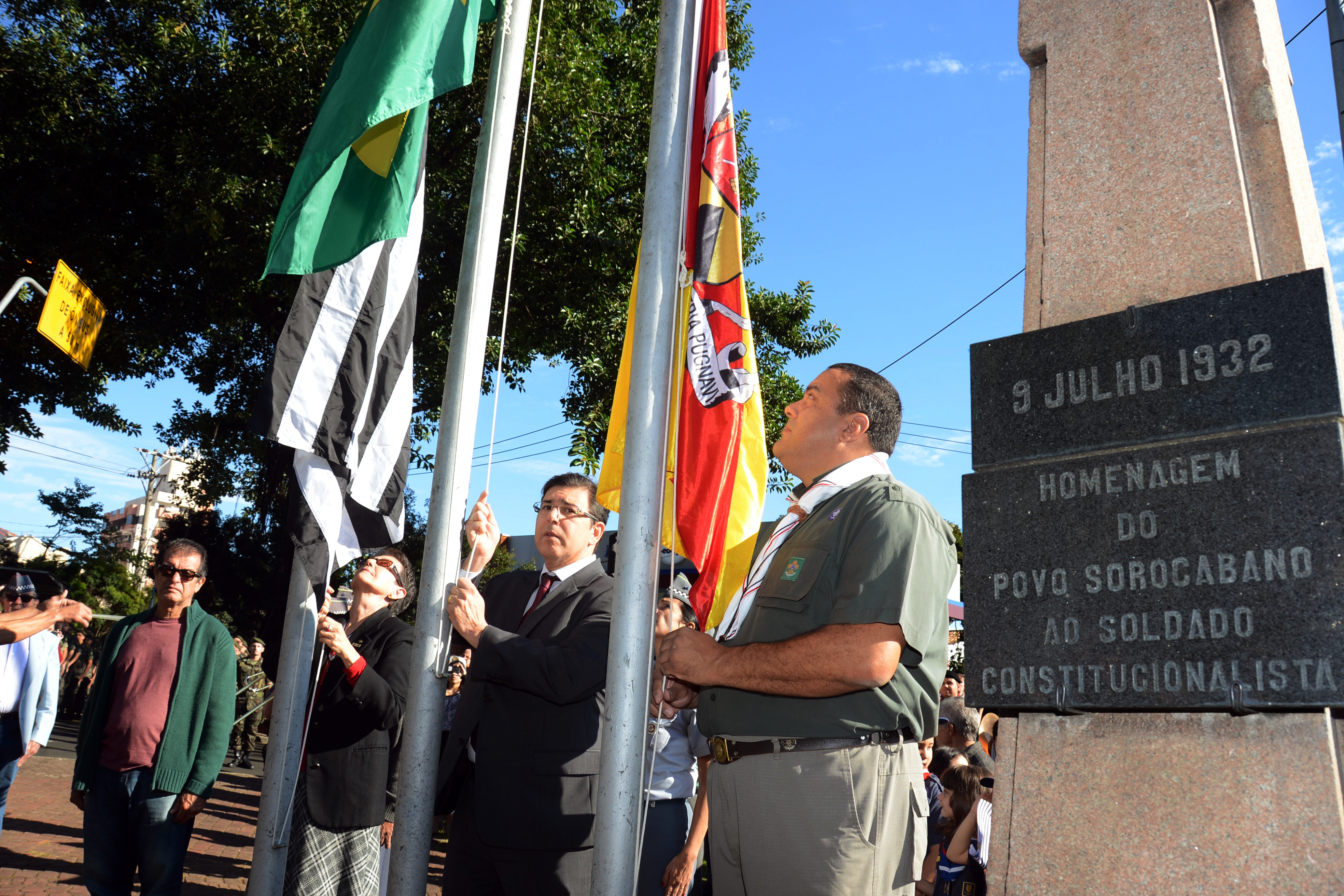 A Praça Nove de Julho ficou pequena para as homenagens à Revolução Constitucionalista de 1932 na manhã deste domingo (09). Autoridades civis e militares, soldados da Polícia Militar e do Tiro de Guerra, escoteiros de diversos grupos de Sorocaba, alunos de escolas municipais e da Escola Pré Militar, jipeiros e população em geral participaram das homenagens aos ex-combatentes.