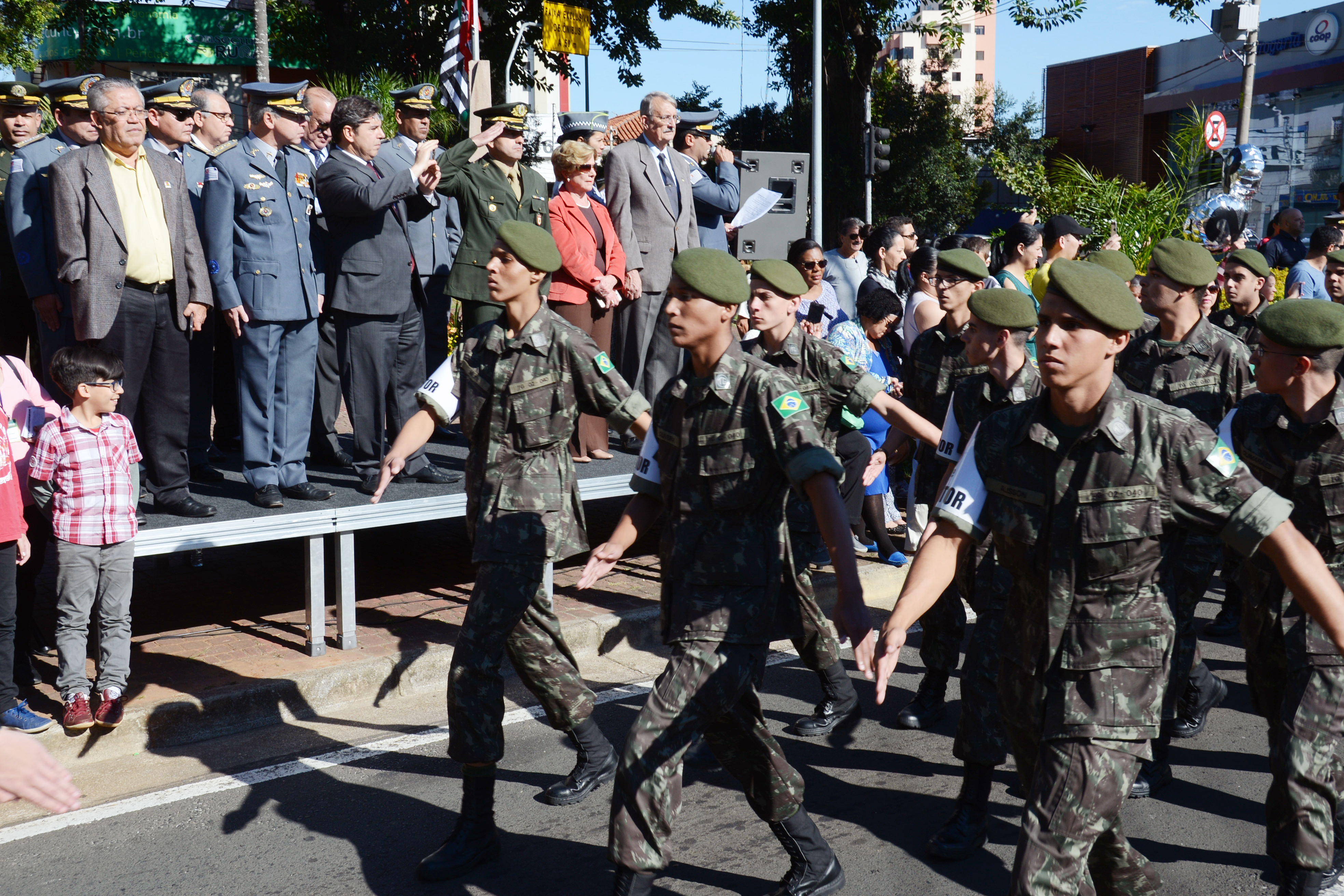 Entre as autoridades presentes estavam o comandante da 14° Circunscrição do Exército, coronel Sandro Zanetti, o titular do Comando de Policiamento do Interior (CPI-7), Antônio Valdir, o sub tenente do Tiro de Guerra, Paulino Silva, o secretário de Segurança e Defesa Civil, José Augusto de Barros Pupin, que representou o prefeito José Crespo, e o secretário de Cultura e Turismo, Werinton Kermes.