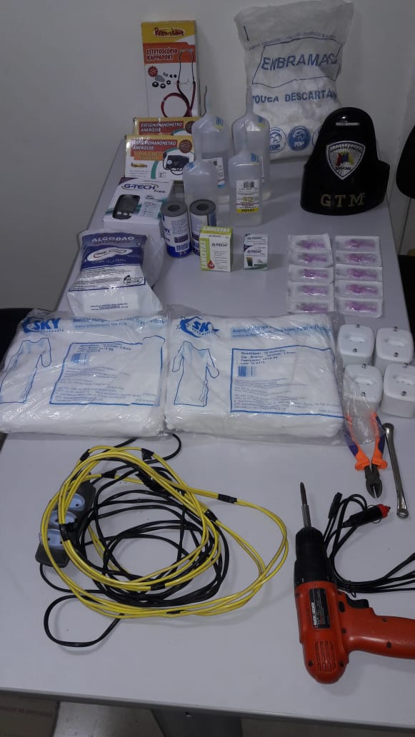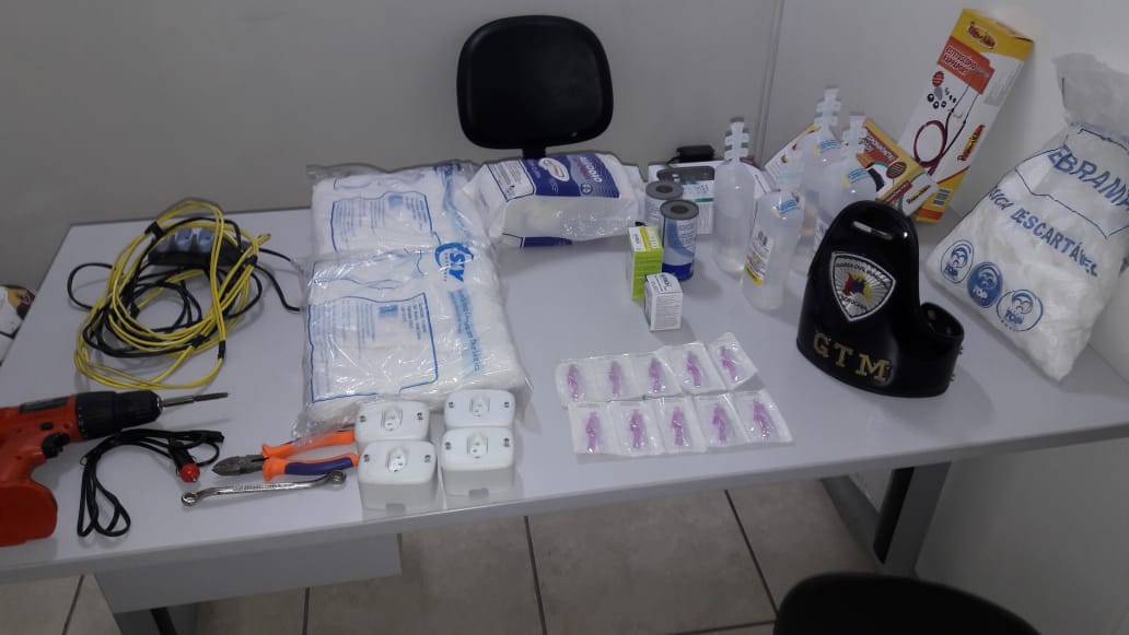 Acionados pelo C.O.E.I., os guardas municipais conseguiram deter P.H.P., de 37 anos, em frente ao estabelecimento. O indivíduo, na verdade, era o ‘olheiro’ para seu comparsa G.N.G., de 25 anos, que estava no interior da escola com os objetos a serem levados, dentre eles aparelho de pressão, extensão elétrica, alicate, e outros. Uma viatura da guarda municipal também foi acionada para dar apoio no local.