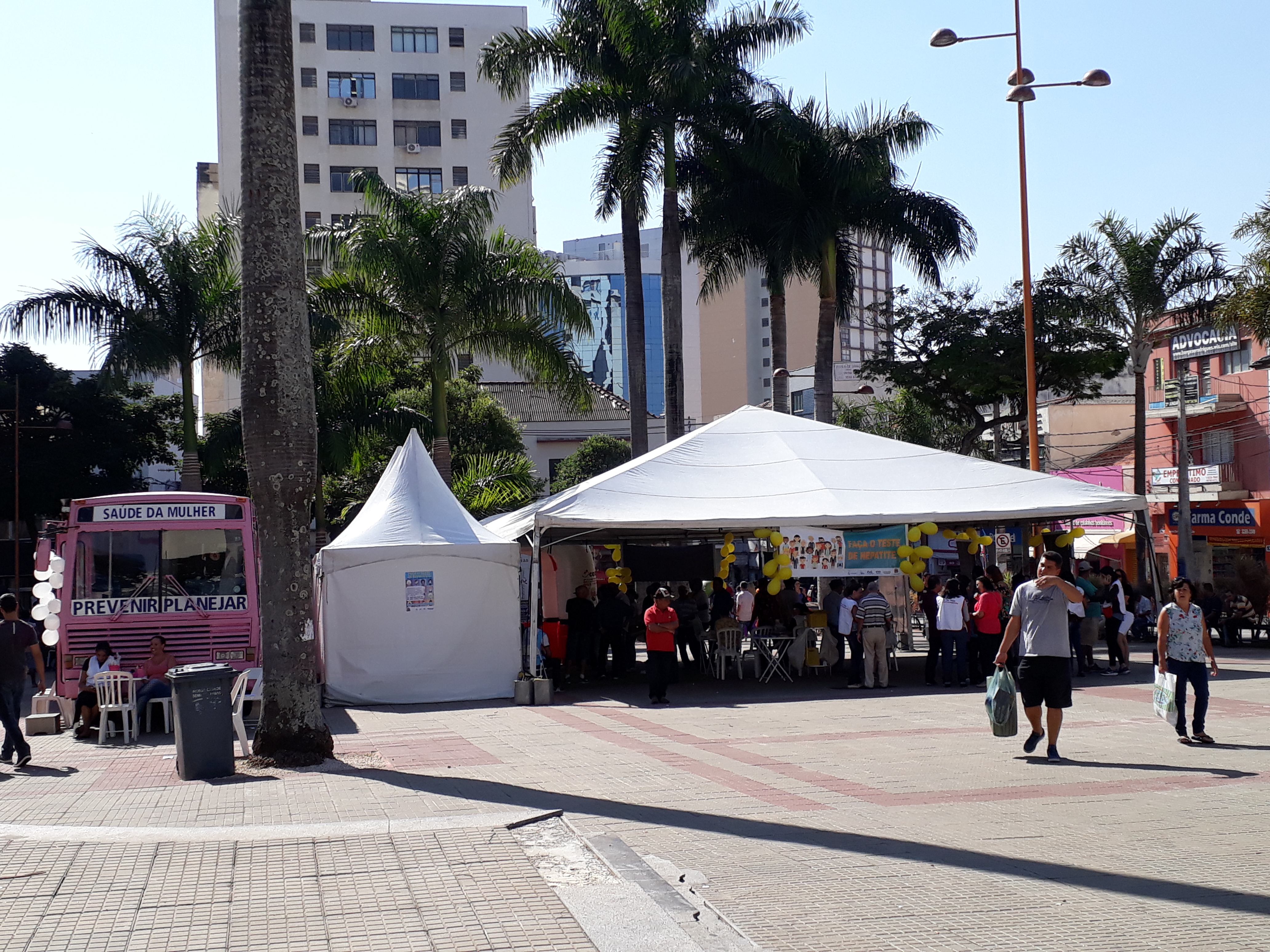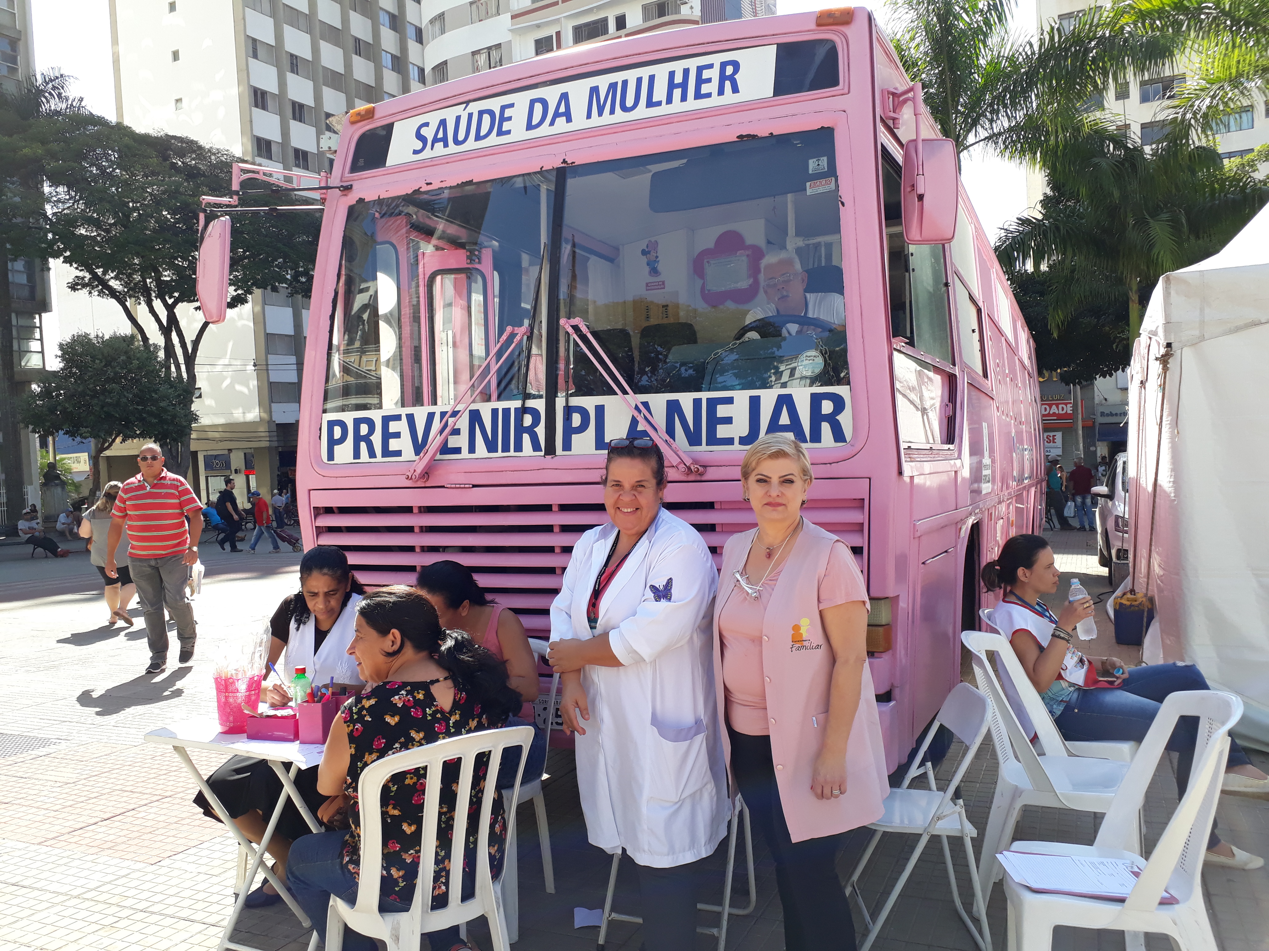 O Ônibus Rosa, unidade móvel da Secretaria da Saúde de Sorocaba, também ficou à disposição das mulheres na Praça Coronel Fernando Prestes, durante a campanha contra a Hepatite C.