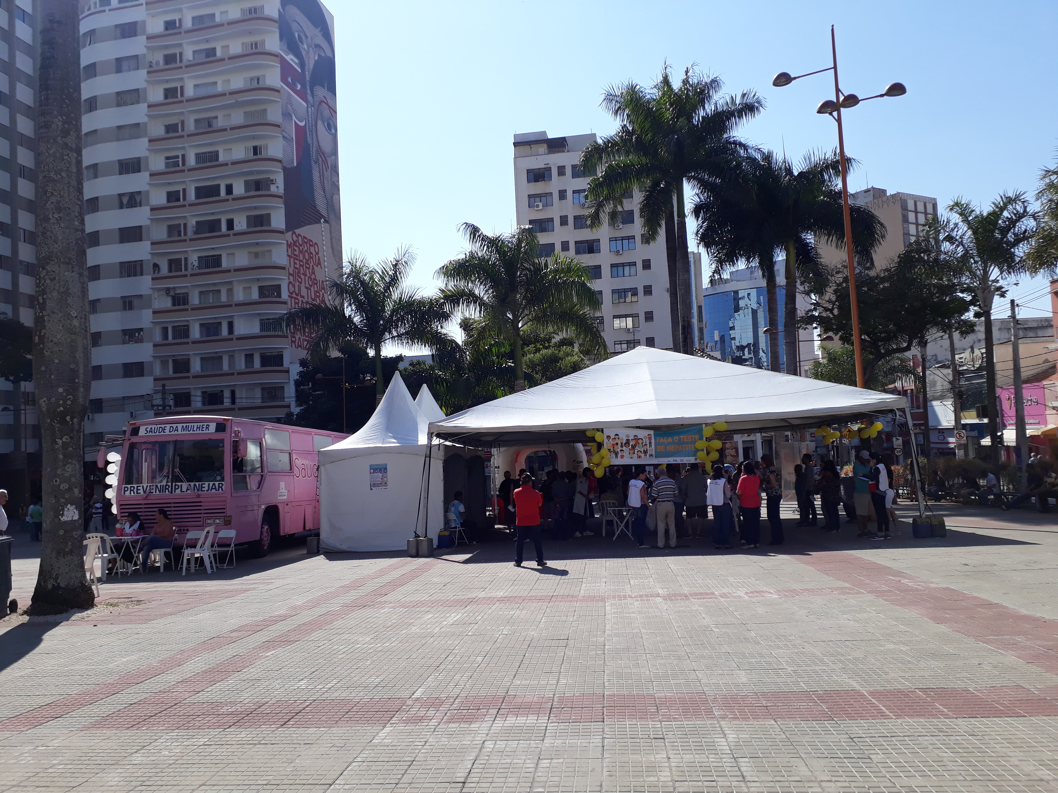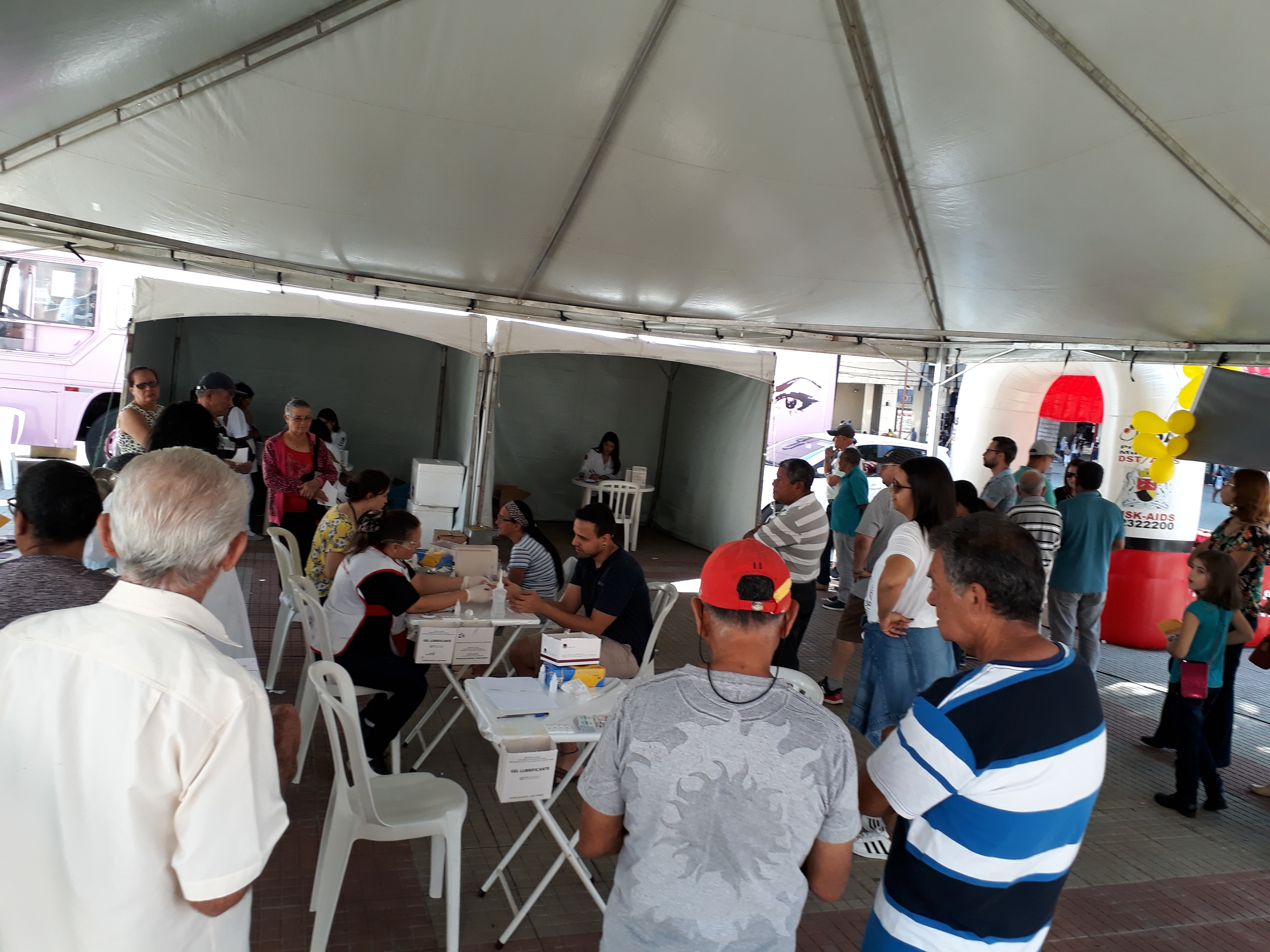 O número de pessoas que fez o teste foi acima do esperado, segundo a coordenadora da campanha. Ônibus Rosa também fez atendimentos na praça.
