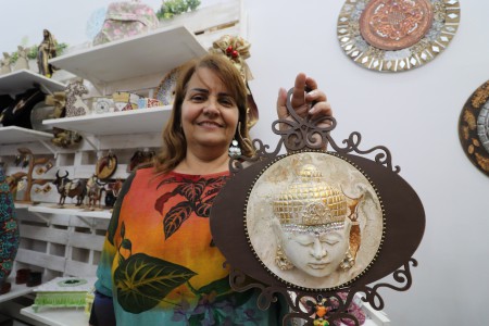 É segurando uma escultura em artesanato, com a imagem de um Buda feito em madeira MDF, pintado com a técnica que imita pedras, que a artesã Margarida Okubo, que faz trabalhos manuais há 20 anos comemora a inauguração da Casa do Artesão, no 1º Piso do Bloco B, do Pátio Cianê Shopping, no Centro de Sorocaba.