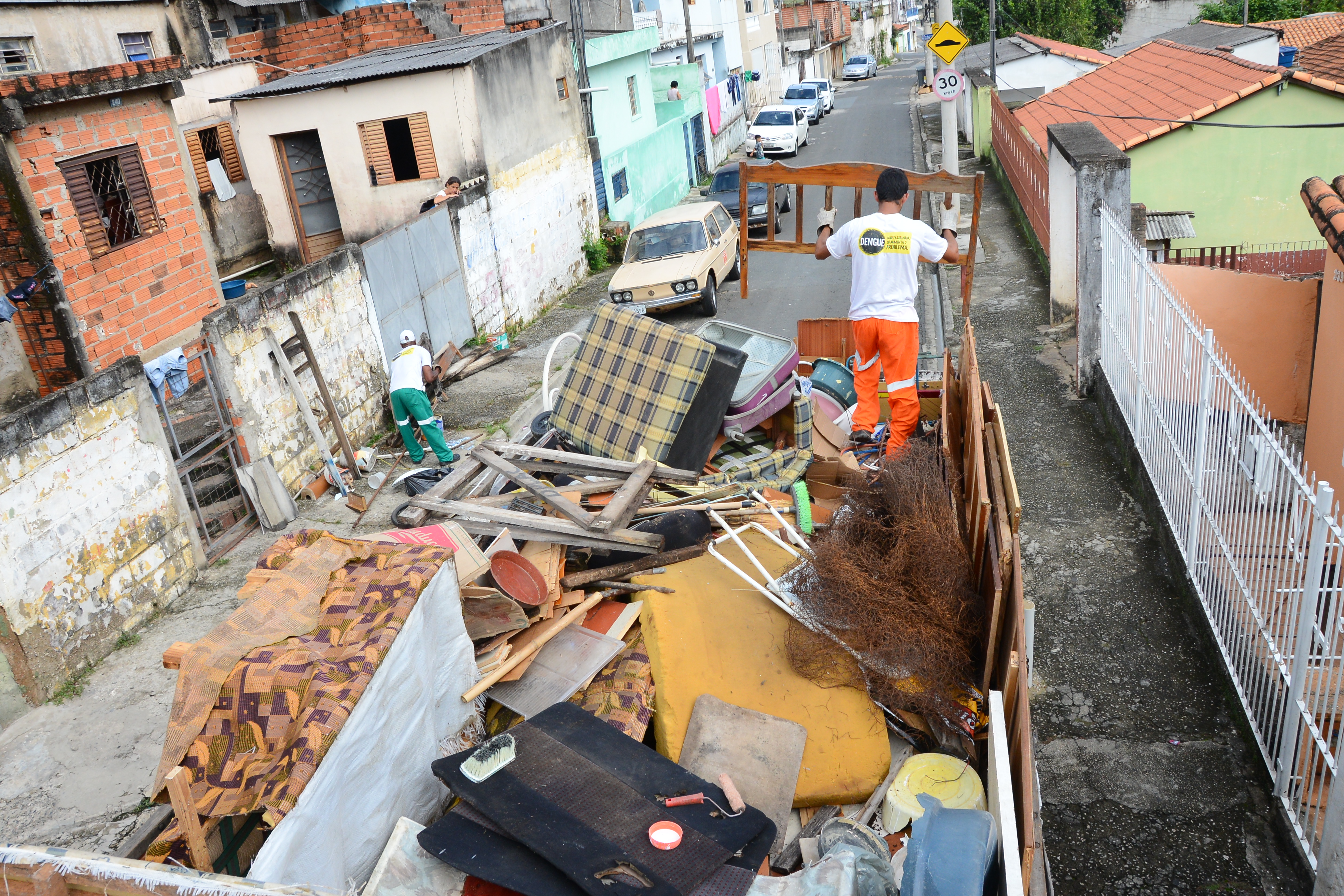A ação que tira de residências materiais inservíveis, geralmente acumulados em quintais, fez na manhã desta quinta-feira (25), nas Vilas Zacarias, João Romão e Sabiá, o maior recolhimento em relação aos demais 79 dias da campanha que já percorreu dezenas de bairros da área urbana de Sorocaba. Foram recolhidas aproximadamente 15 toneladas de materiais que exigiram seis viagens, duas por cada um dos três caminhões que atendem à operação. Na média do período, cada dia de trabalho registrou o recolhimento de cerca de 9 toneladas, sendo uma viagem por veículo até o Aterro de Intertes, para onde o material é transportado.