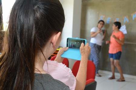 As irmãs Nair Molina e Maria Molina, frequentadoras do Clube do Idoso e participantes da oficina, demonstram satisfação com as aulas e como elas tem contribuído em suas vidas. “Está sendo muito bom participar da oficina, estou adorando, pois já gostava de internet e de Facebook, mas não sabia mexer e agora estou aprendendo. Elas me ensinaram a maquiar pelo celular, afinar o rosto, diminuir as bochechas e a usar a luz da janela pra tirar selfie”, avaliou a aluna Nair. Sua irmã Maria completa: “para mim é tudo novidade, pois não conhecia nada na parte de internet e já aprendi a tirar foto e vou continuar treinando em casa”.