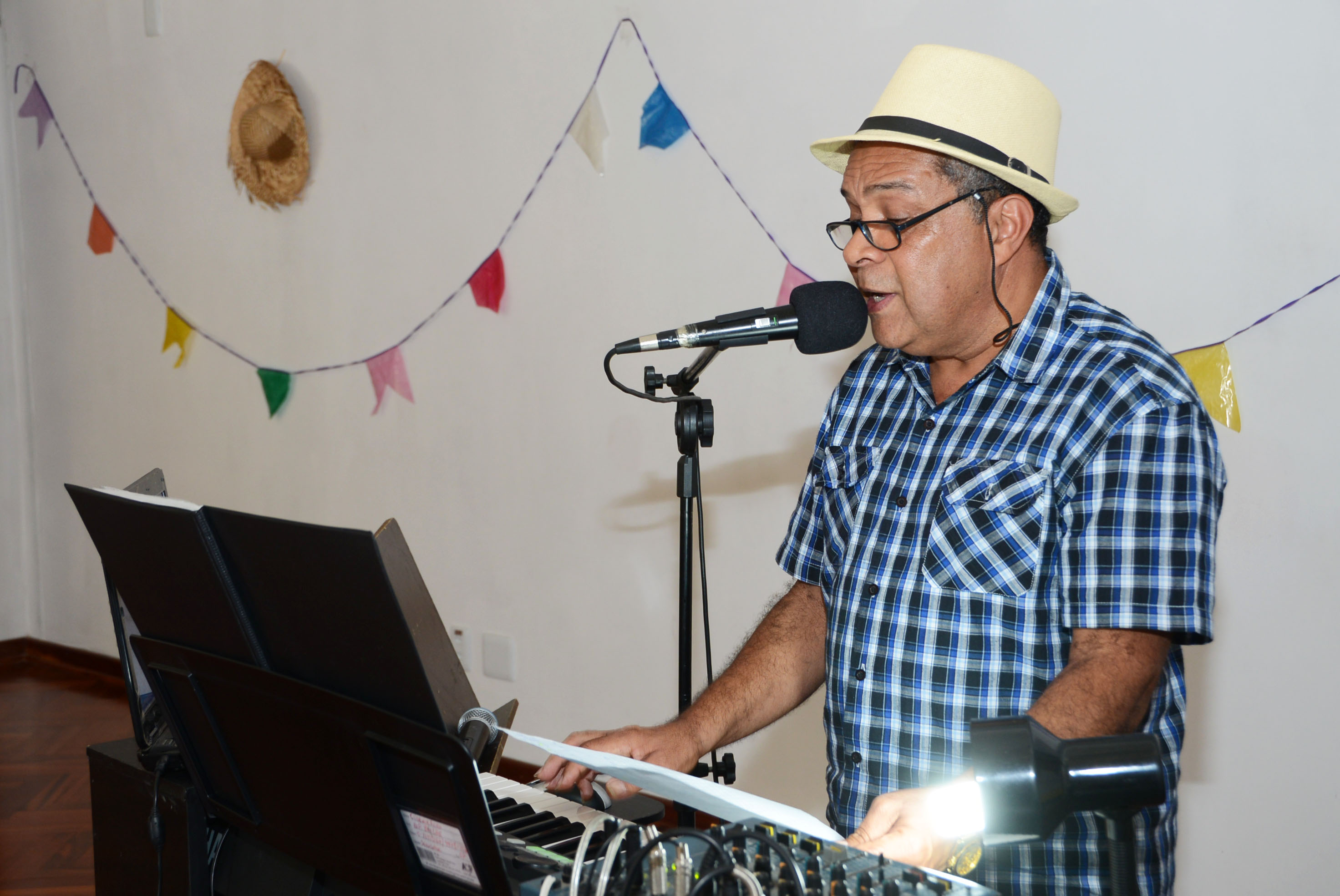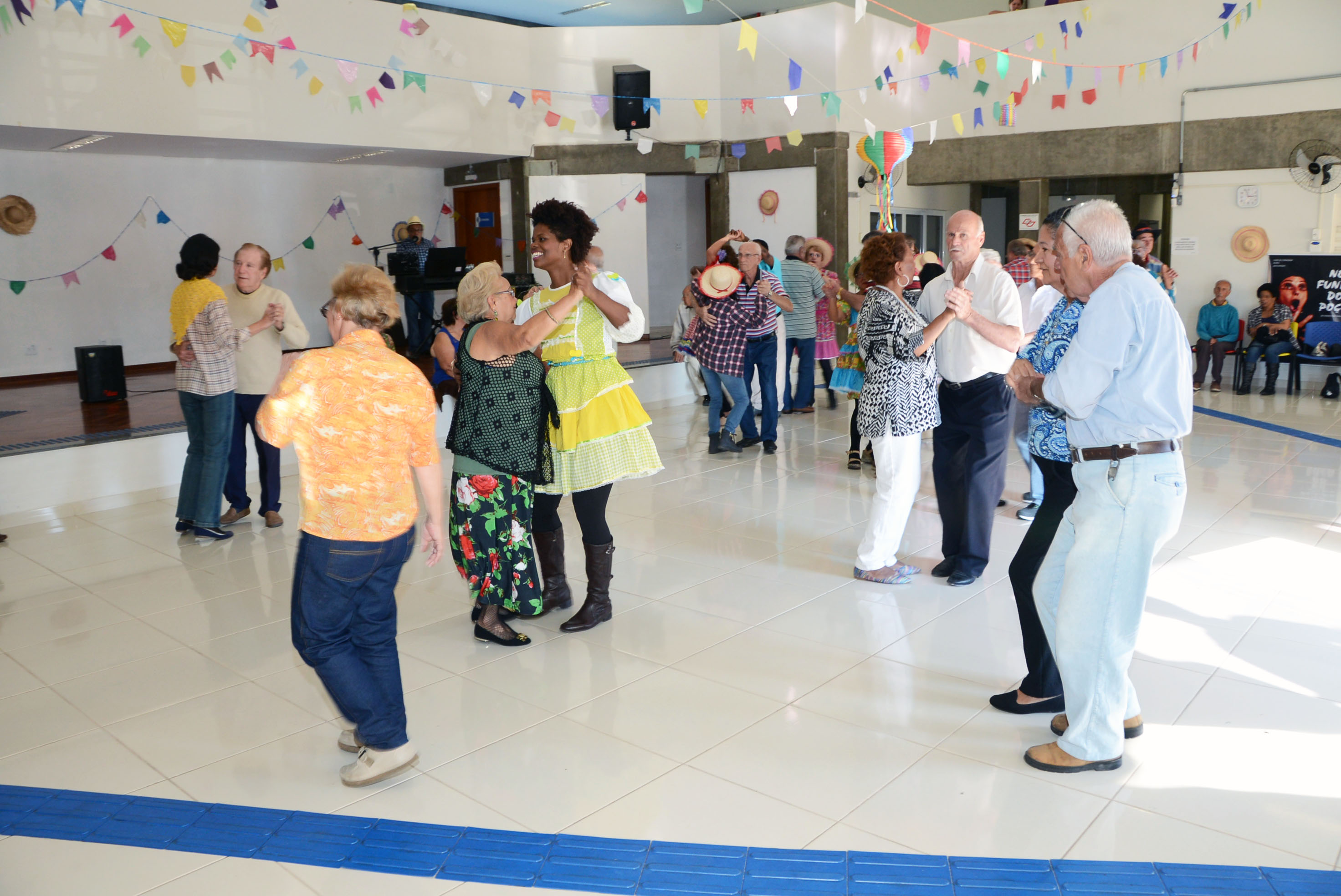 Na tarde desta quinta-feira (16) não faltou diversão na Festa Junina do Clube do Idoso “Carlos Alberto Moura Pereira da Silva”. O baile reuniu mais de 60 sócios do Clube e da Chácara do idoso, que marcaram presença vestidos a caráter. Na unidade toda decorada especialmente para a data, eles foram recebidos com música ao vivo, com apresentação de Cledemir Filho, um dos frequentadores do centro de convivência.