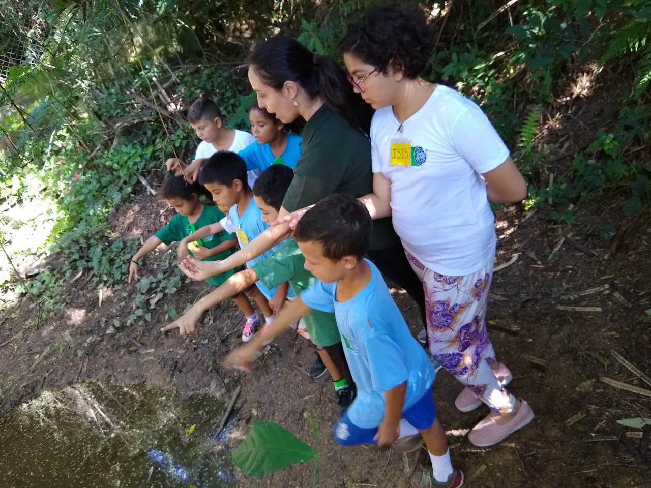 Logo, foi acompanhado o percurso da água desde a nascente passando pela formação do lago até o córrego que passa pelas casas dessas crianças e deságua no Rio Sorocaba, onde foi observado a diversidade de vida que habita no local, tais como, peixes, aves, anfíbios, entre outros.