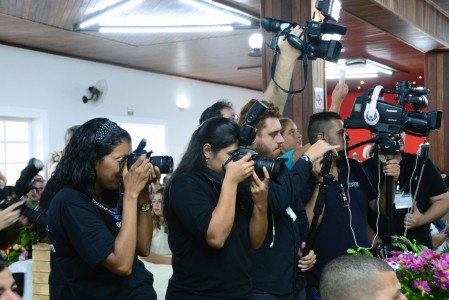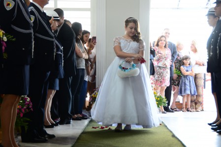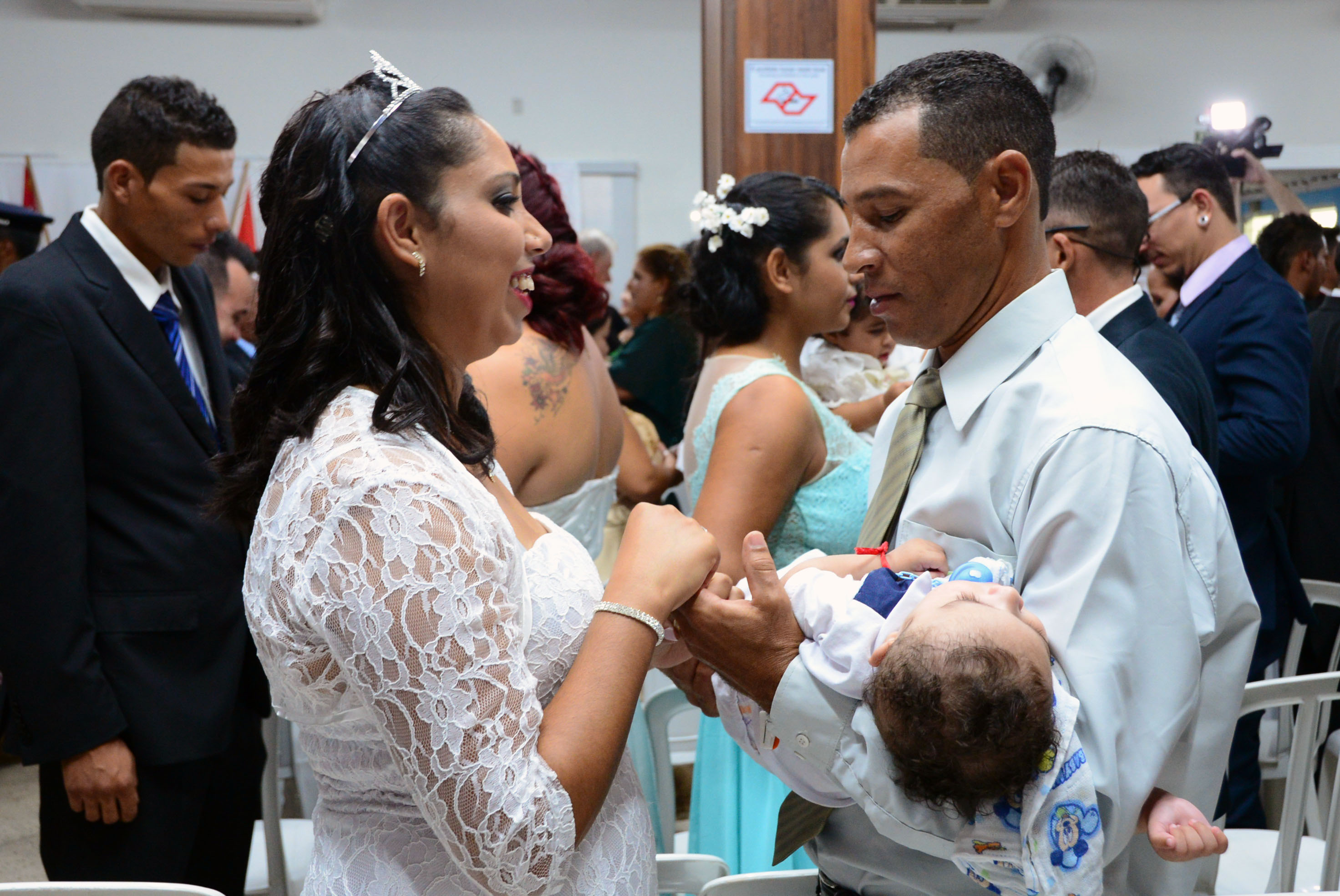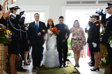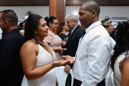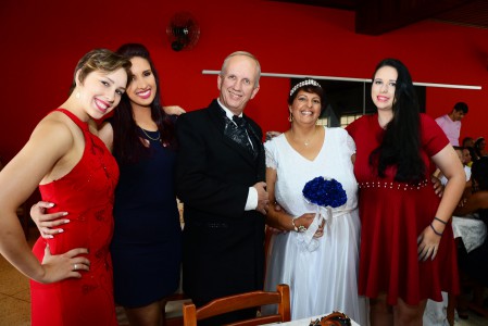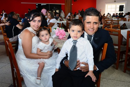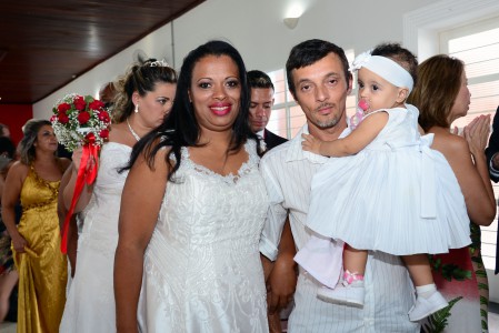 É o caso do locutor Sérgio Vitor Sakatauskas, 52 e a esposa Aparecida dos Santos, 52, juntos desde os 16 anos que oficializaram a união ao lado das três filhas, Raíssa, Yasmin e Dafne, de 21,25 e 26 anos. “Estamos dando o nosso exemplo para elas, ao mesmo em tempo que reafirmamos e renovamos o nosso elo junto a Deus”, comentou o casal. O mesmo sentimento foi do jovem casal Ana Paula Borges, 23 e Eduardo de Brites, 27 que celebraram o momento com os dois filhos pequenos, Sophia Elena de 1 ano e sete meses e Enzo Gabriel de 4 anos. “O casamento é um sonho para nós e para podermos batizar as crianças”, comentou a noiva.