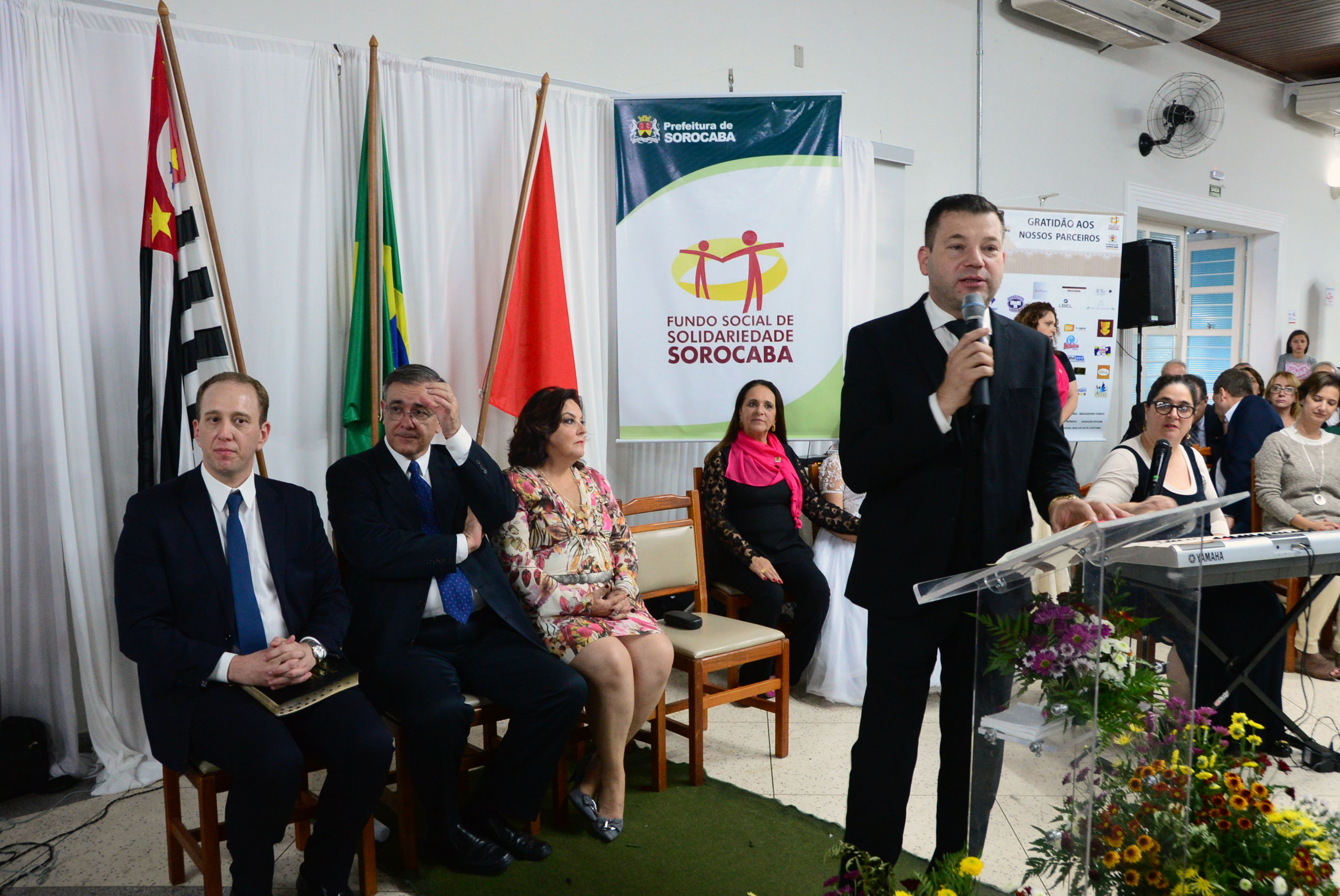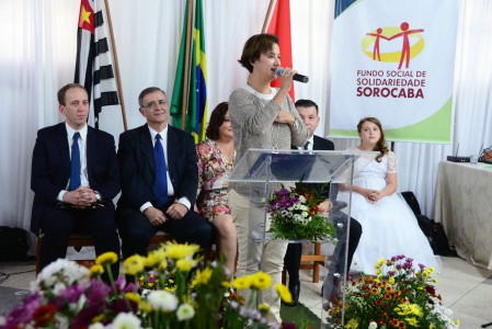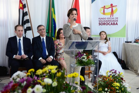 Em um discurso emocionado, a primeira-dama e presidente do FSS, Lílian Crespo, fez questão de agradecer a cada um por terem feito uma festa tão linda, sem qualquer custo para Prefeitura. “Fazer uma festa para mil pessoas tem um custo, é claro, mas foi a custo zero para o poder público, graças a generosidade de muitos parceiros”, comentou a primeira-dama, que foi aplaudida por todos ali presentes. “Vamos marcar história desta cidade. Os protagonistas desta festa são as instituições, o comércio e os voluntários”, frisou. Lílian fez questão de listar todos os parceiros deste ano e antecipou manter a tradição do casamento em 2018. “Eu sei o valor de um sonho e hoje estamos aqui realizando o sonho de vocês”, comentou.