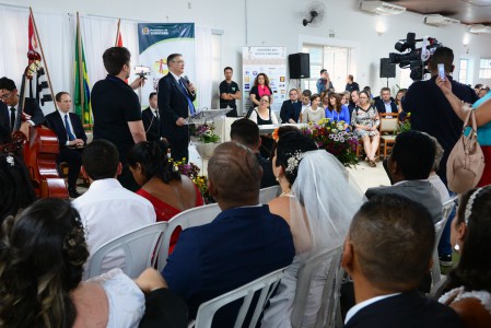O prefeito José Crespo, dirigiu aos noivos palavras de otimismo e perseverança. “Temos desafios e conquistas em nossas vidas. Uns já formam família, outros estão formando, mas já assumiram esse compromisso, parabéns a todos”. Em seu discurso o prefeito ressaltou o agradecimento as empresas parceiras e convocou à frente a equipe do Fundo Social e voluntários que realizaram o sonho desses casais.