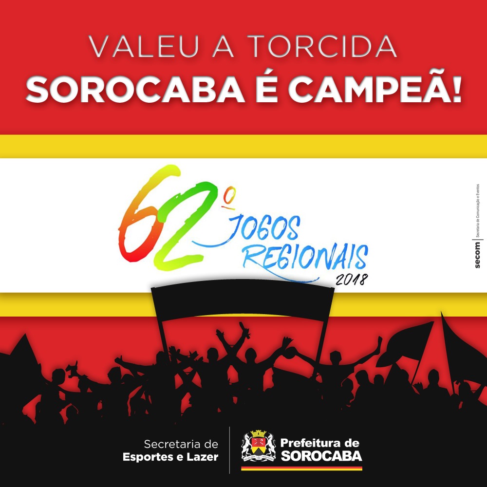 Faltando dois dias para o término da 62ª edição dos Jogos Regionais, a cidade de Sorocaba faz história no esporte e já pode soltar o grito de campeã. O torneio, que começou no último dia 3 de julho e termina oficialmente no próximo sábado (14), é um dos principais torneios esportivos do interior de São Paulo. Nesta edição – realizada em Tatuí, Boituva e Cerquilho – 56 cidades participaram da competição.
