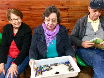 O grupo da Melhor Idade participou de uma roda de conversa sobre o descarte adequado de pilhas e baterias de uso doméstico e puderam levar neste encontro as pilhas que estavam acumulando em suas residências, para o descarte correto. Vale lembrar que, na composição desses materiais encontram-se metais pesados e por isto é importante não guardá-los por muito tempo, já que eles sofrem reações químicas quando armazenados em gavetas ou armários.