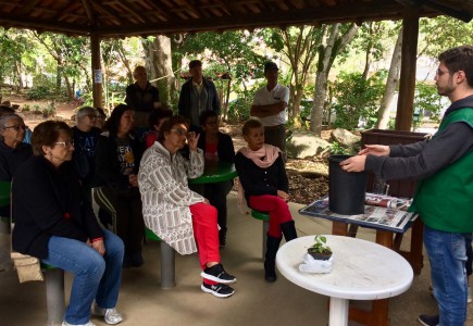 A Secretaria do Meio Ambiente, Parques e Jardins (Sema), por meio do Clube Ecológico da Melhor Idade “Roda Viva” do Parque da Biquinha, realizou nesta terça-feira (04) a Oficina de Descarte de Resíduos Domésticos, com a montagem de uma composteira e uma roda de conversa com o tema “Descarte correto de pilhas e baterias”. Atividades em comemoração à Semana do Meio Ambiente de 2019.