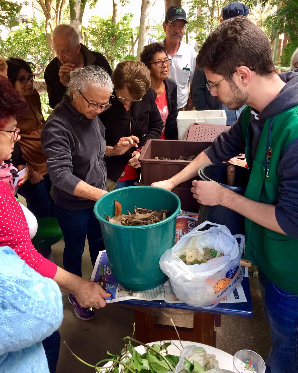 Os participantes montaram uma composteira caseira para o Parque para compreenderem que a compostagem ajuda na redução das sobras de alimentos, tornando-se uma solução fácil para reciclar os resíduos gerados nas residências. Além disto, o adubo resultante da compostagem pode ser utilizado em jardins, hortas e canteiros.