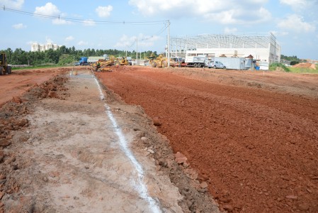 A implantação das vias é realizada pela SPL Base, empresa que venceu o processo licitatório. Num primeiro momento ocorreu a limpeza da área e nesta semana a empresa responsável faz todo o trabalho de preparação do terreno para que seja feita a pavimentação. Além do asfalto, as pistas terão paisagismo que envolverá o plantio de 35.000m2 de grama e sistema de iluminação pública, com postes de aço de doze metros de altura.