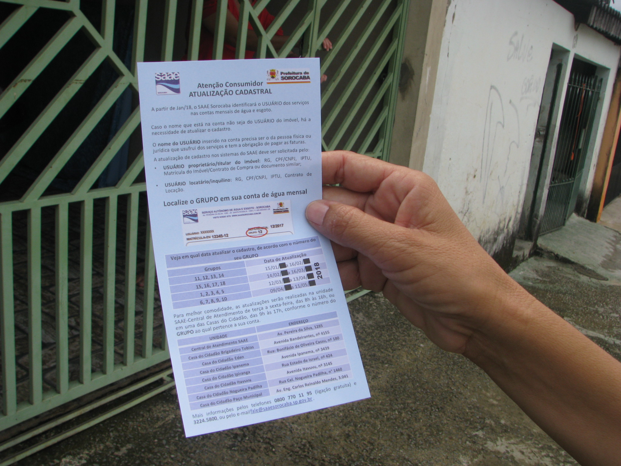 Nos eventuais casos de nome incorreto, deve ser observado qual é o cronograma de atendimento para a atualização e no mês correspondente ao cronograma ir até a uma das sete unidades da Casa do Cidadão ou na sede do Saae-Sorocaba, na avenida Pereira da Silva, 1.285, em Santa Rosália.