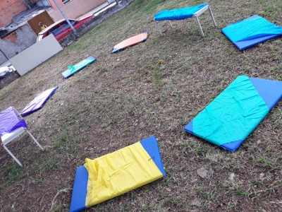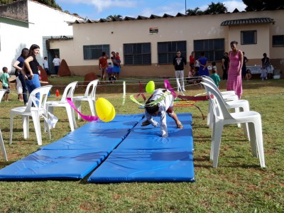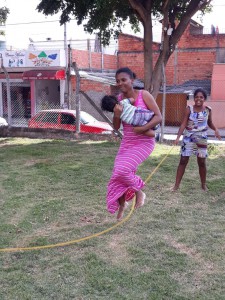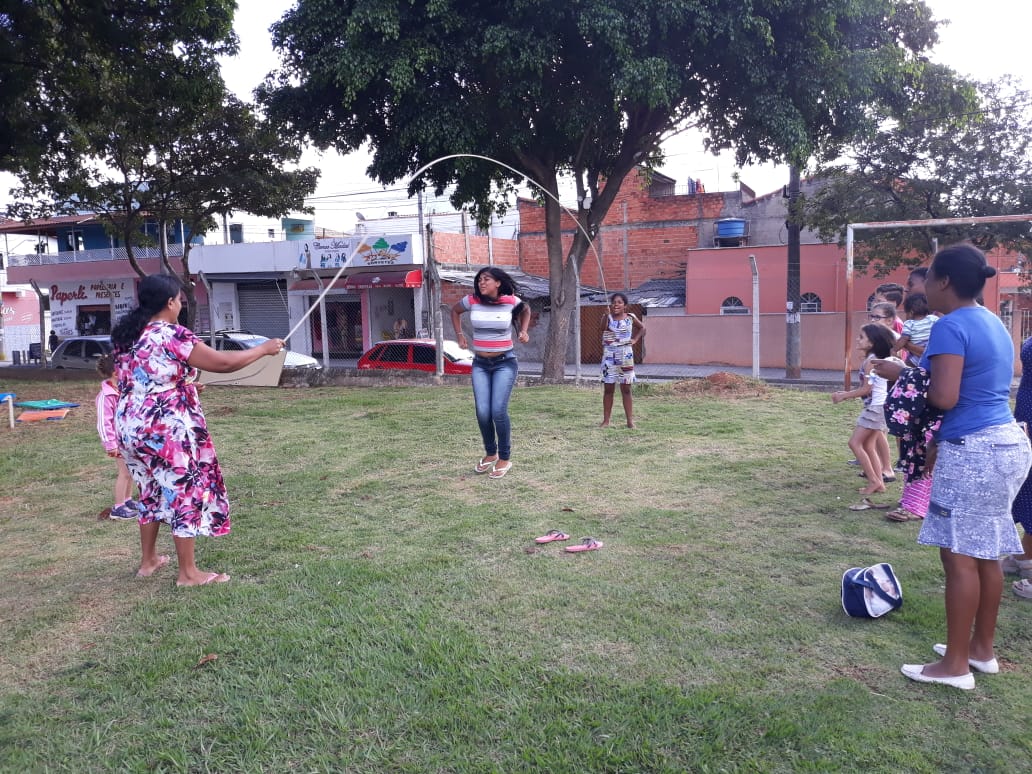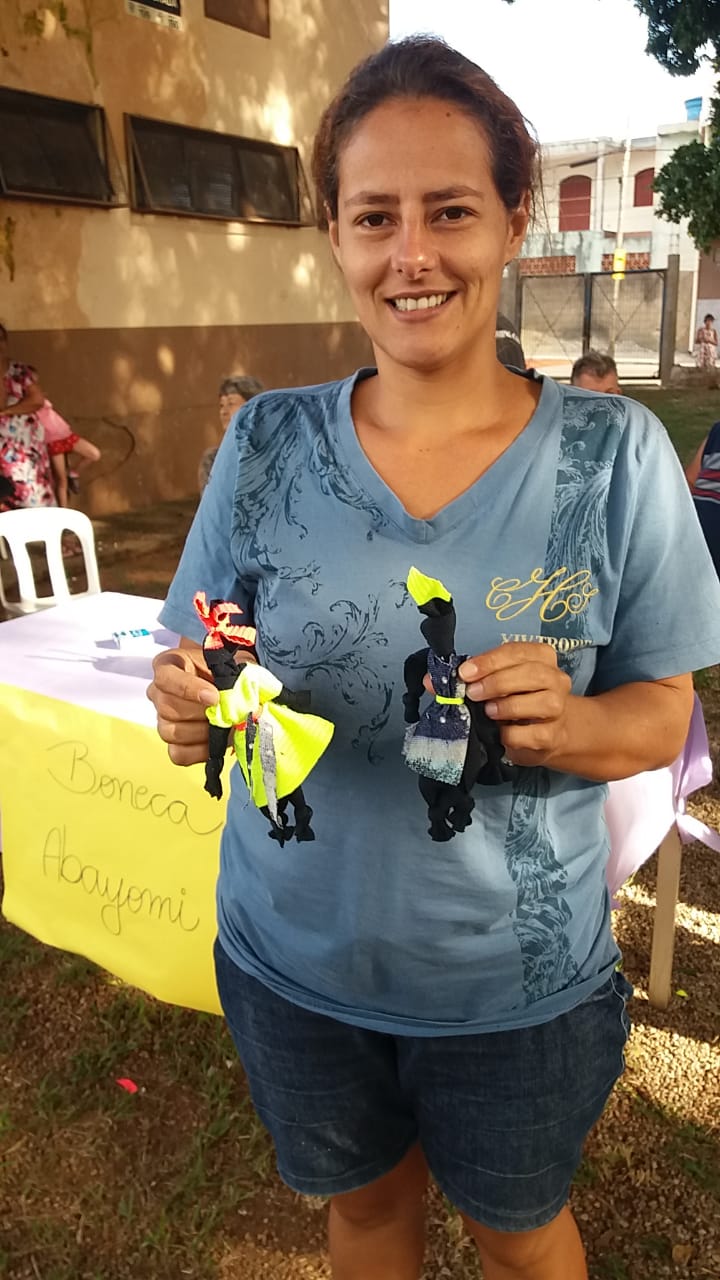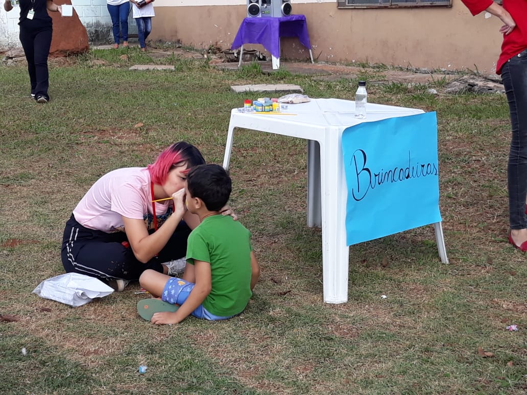 A integração ficou por conta das brincadeiras, no “espaço kids” – que contou com um circuito psicomotor e pintura facial, “espaço voltado para adultos e idosos”, com a confecção de bonecas Abayomi e sua hostória, onde as mães africanas rasgavam retalhos das suas saias e a partir deles criavam bonecas pequenas, que serviam como amuletos de proteção para seus filhos, e “espaço livre” para atividades como amarelinha e pular corda entre adultos e crianças, que entraram em prática na área livre do CRAS.