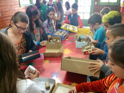 Em outra atividade elas fizeram uma caixa lúdica para trabalhar a coordenação motora. Para isso elas reaproveitaram caixa de camisa, rolinhos de papel higiênico e bolinha de desodorante roll on. Para finalizar, eles participaram de brincadeiras lúdicas, como a teia da vida e o jogo do lixo, para trabalhar a cooperação em equipe e com o meio ambiente.