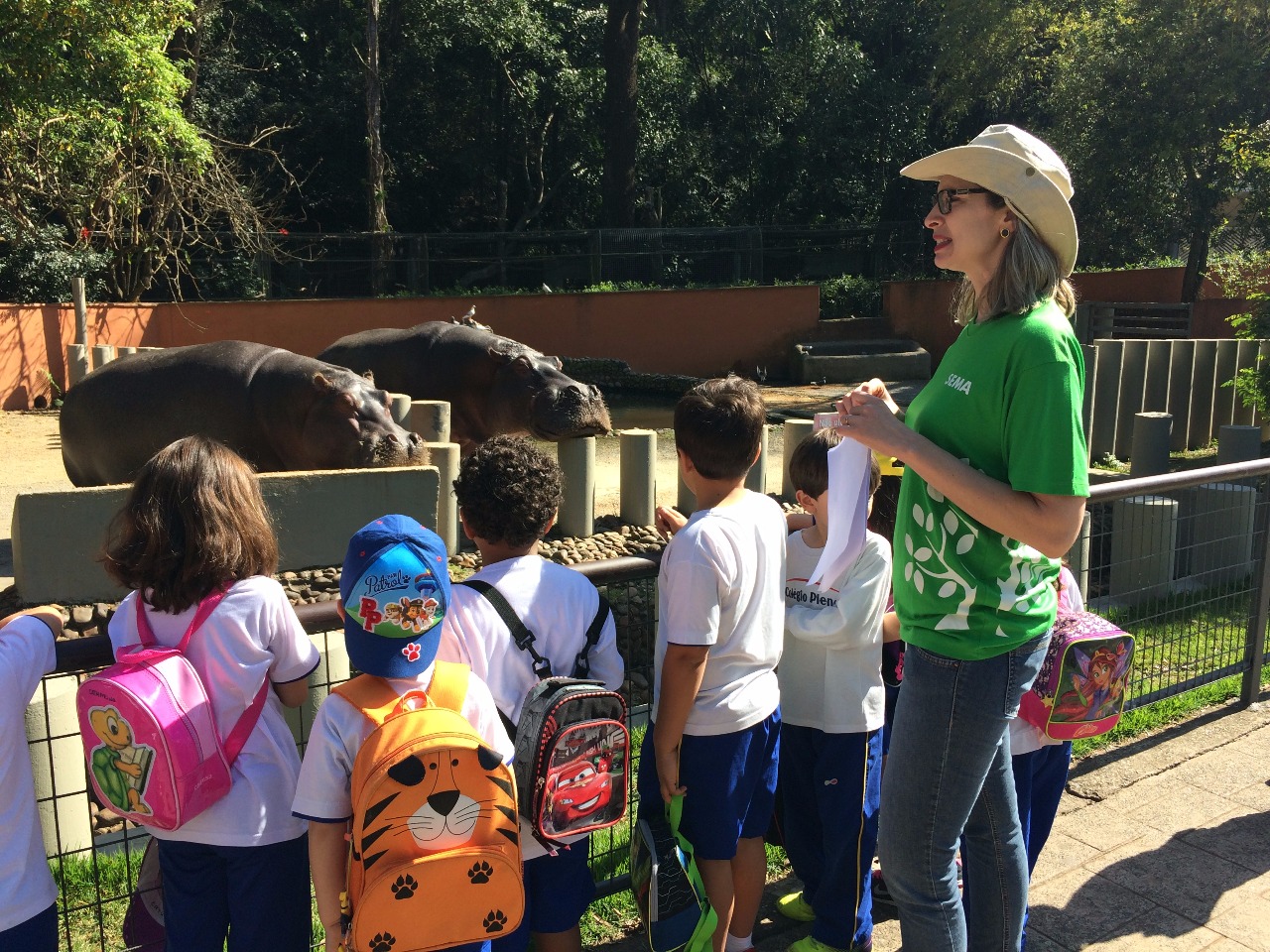 Acompanhadas pela equipe de Educação Ambiental da Sema, as crianças conheceram o aviário, lêmure-de cauda-anelada, urso-de-óculos, hipopótamo, mico-leão-dourado, sagui-da-mão-amarela, macaco-aranha, lobo-guará, leoa, elefante, jacaré-açu, flamingo, suindara, entre outras espécies que habitam o parque municipal.