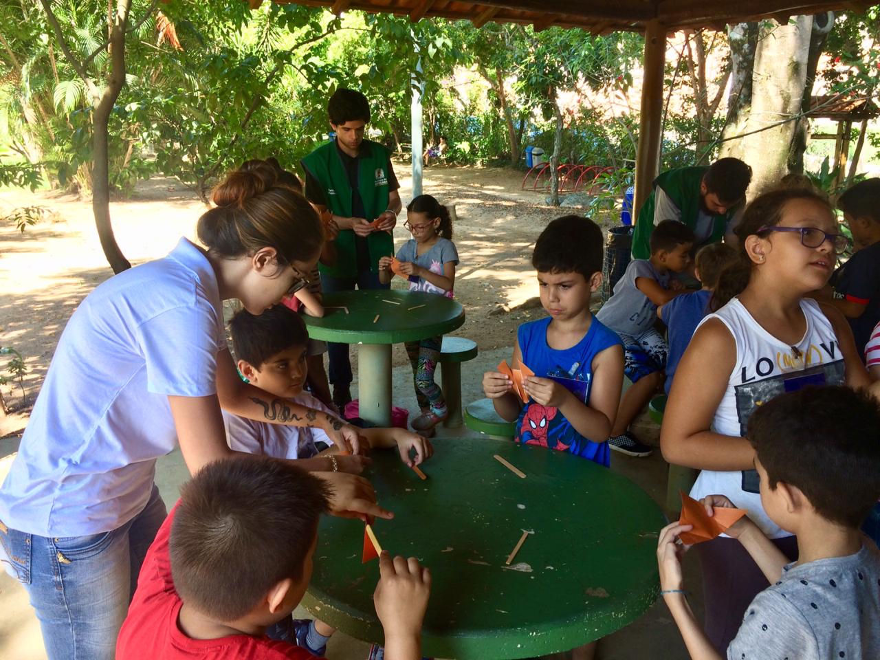 Neste primeiro dia da programação, divididos em grupos, os pequenos fizeram dobraduras de cães e gatos e ainda assistiram um teatro de fantoche no qual o cachorro conta ao público infantil as suas necessidades e o que ele precisa para ter uma vida saudável. Na sequência, a equipe de Educação Ambiental da Sema levou os grupos para uma trilha no Parque da Biquinha e contou a história do espaço ecológico.