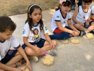 Crianças aprenderam a construir ninho de ave em ação de Educação Ambiental