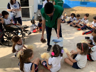 No bate-papo com os alunos, a equipe de Educação Ambiental falou sobre as características e curiosidades de espécies de aves urbanas, como a cambacica, lavadeira-mascarada, sabiá-barranco, bem-te-vi e o beija-flor, e conheceram os ninhos de cada um delas. “Elas curtiram muito, em especial as crianças de 6 anos que estão nessa fase de descoberta e curiosidade, fazendo várias relações e conexões”, comenta Rachid.