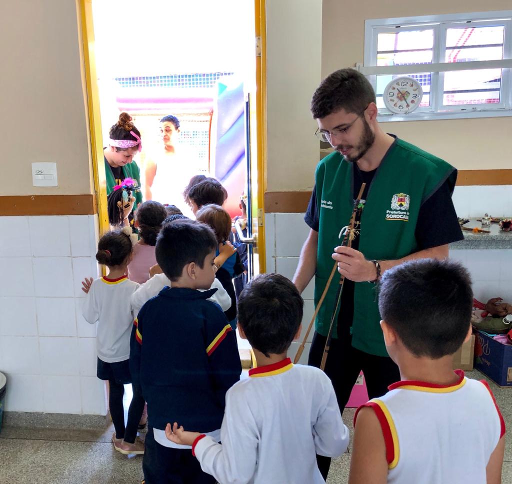 A Secretaria do Meio Ambiente, Parques e Jardins (Sema) finalizou nesta sexta-feira (29) as atividades deste semestre do projeto Bica vai à Escola, relativas ao ano letivo de 2019. A última edição do semestre da ação, que é um programa de educação ambiental do Parque da Biquinha, foi desenvolvida nesta sexta-feira (29) junto aos estudantes do CEI 103, localizado no bairro Sorocaba Park, tiveram a oportunidade de conhecer um pouco sobre a cultura indígena. Na quarta e quinta-feiras, 148 crianças do CEI 31, do Jardim Gonçalves participaram da mesma atividade