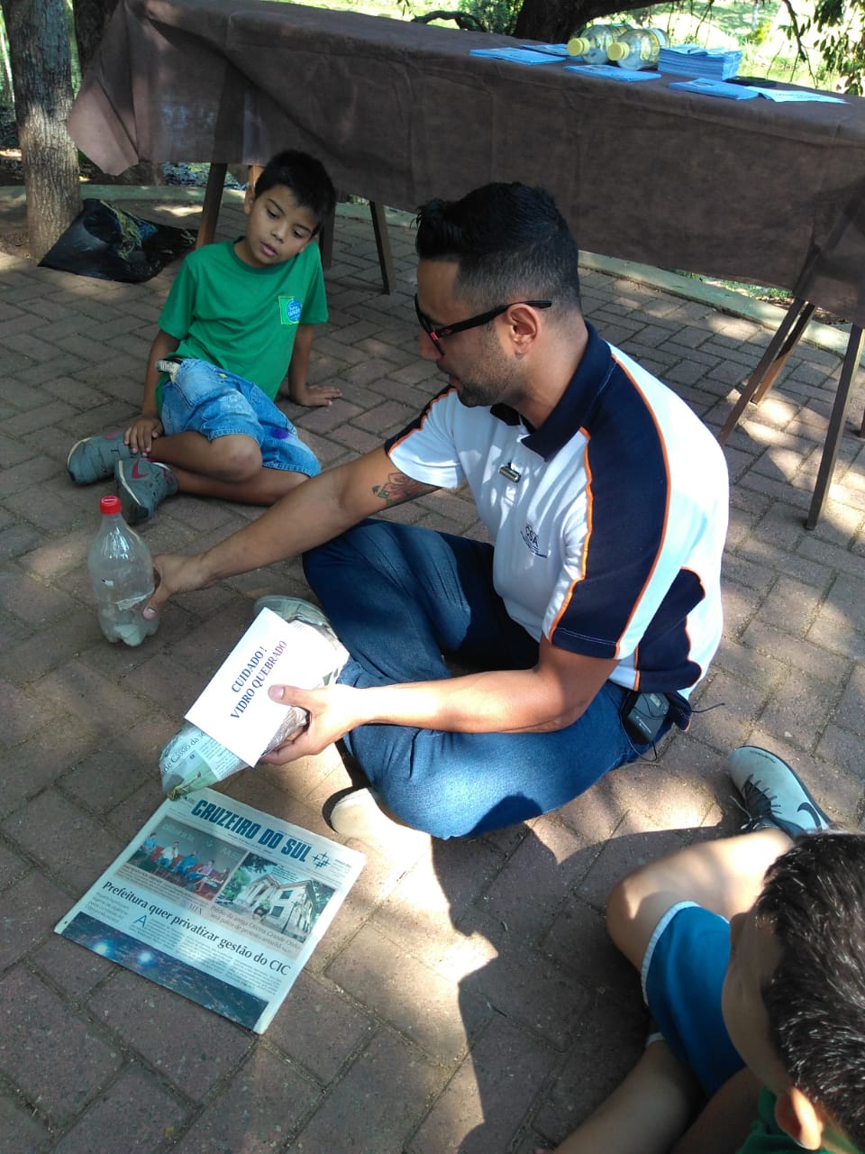 Na atividade prática, os integrantes do Clubinho do Refúgio aprenderam a embalar vidro, por exemplo, numa garrafa pet lacrada ou ainda em bastante jornal. Também no próprio parque, eles abordaram visitantes e orientaram sobre o descarte adequado.