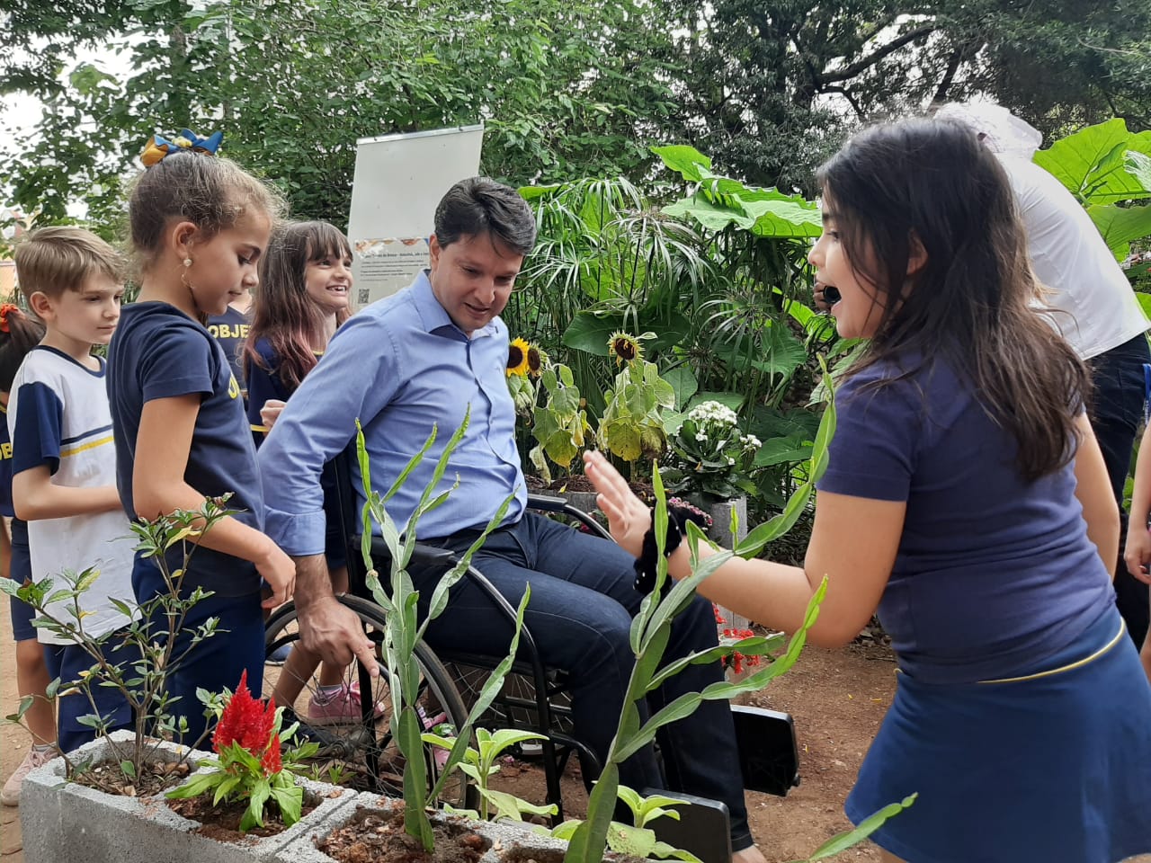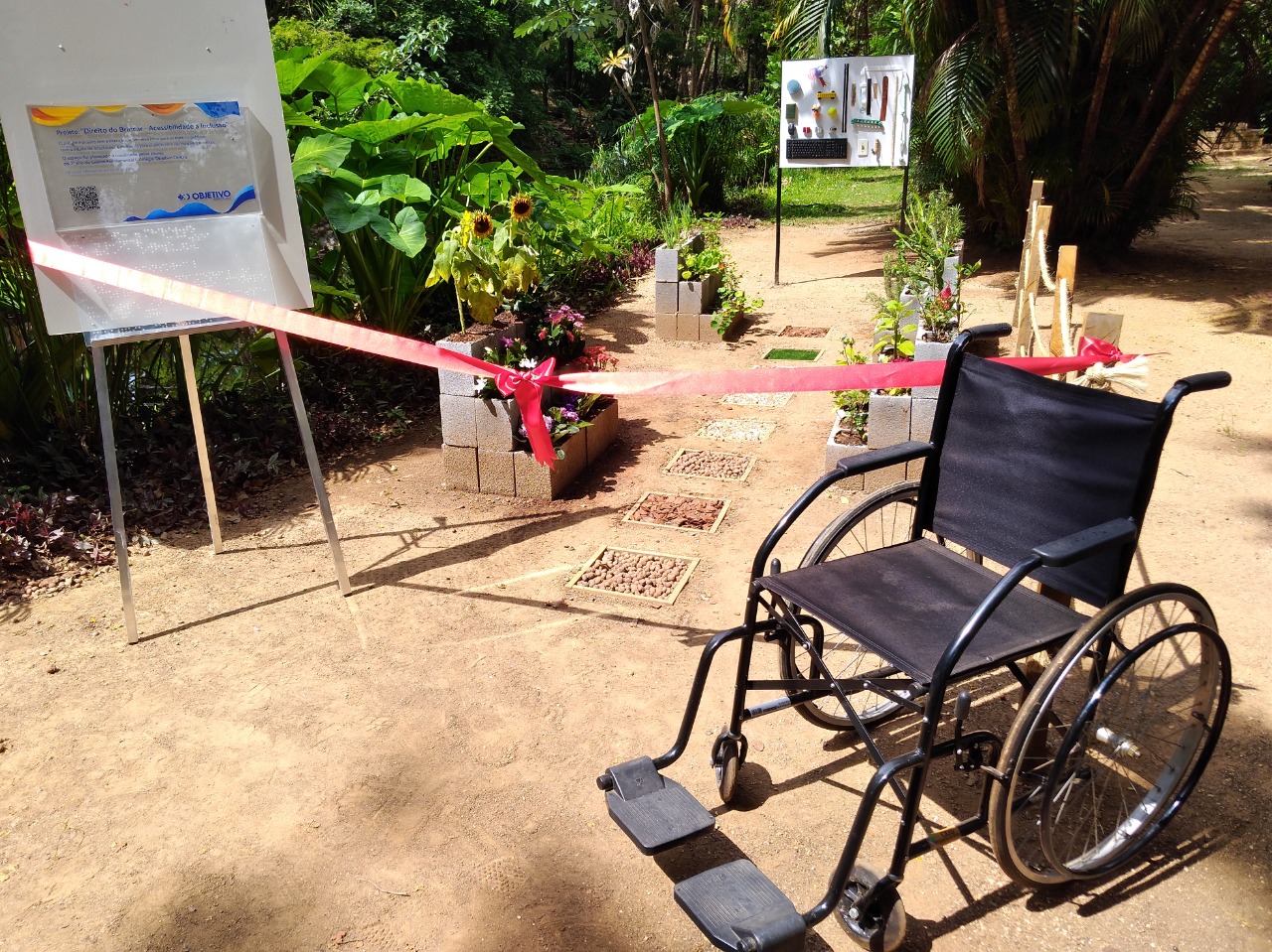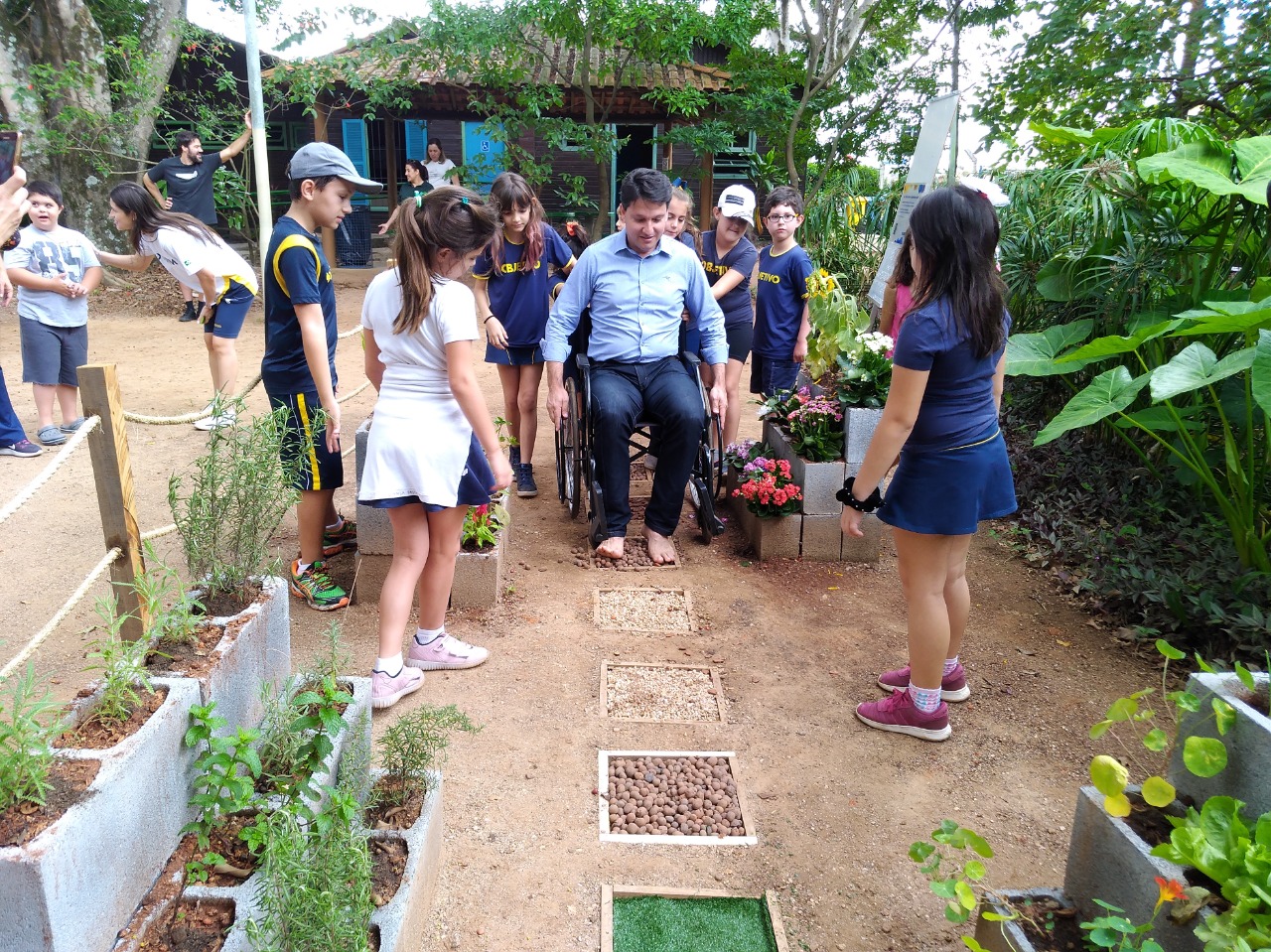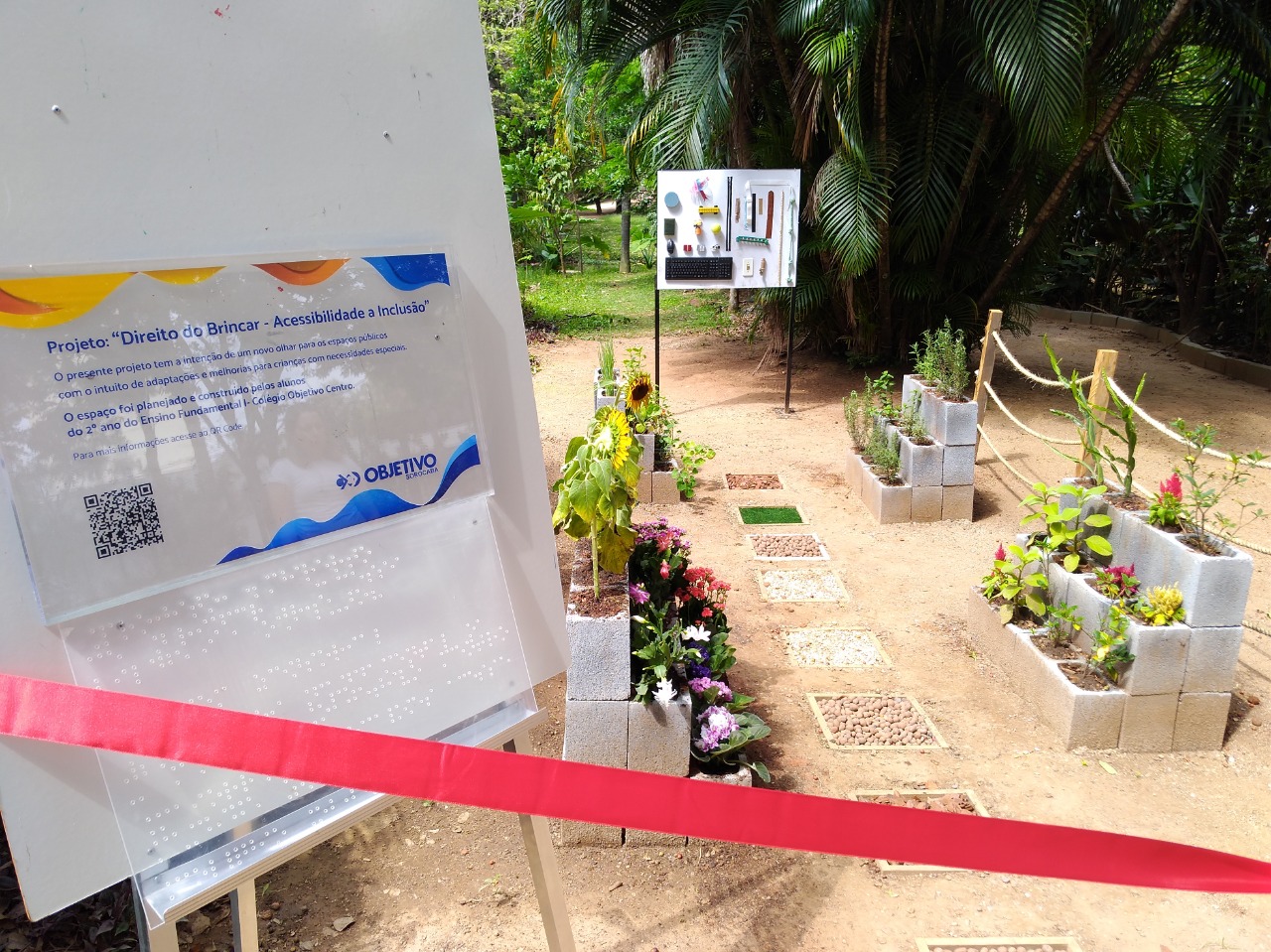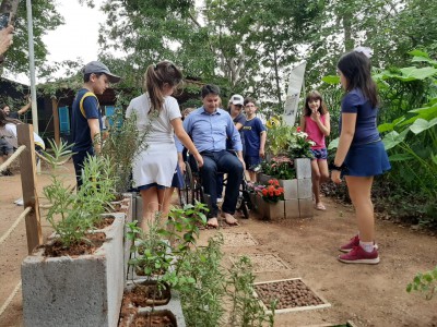Na inauguração, as crianças apresentaram ao secretário do Meio Ambiente cada espaço desenvolvido por elas. No Jardim Sensorial, por exemplo, foram criados ambientes com plantas e flores que aguçam os quatro sentidos: visão, paladar, o olfato e o tato. No caminho foram utilizados elementos, como pedras e grama sintética, para que as pessoas sintam diferentes texturas ao caminhar. Já o painel foi feito com objetos que as crianças trouxeram de casa para que as pessoas identifiquem cada um através das texturas.