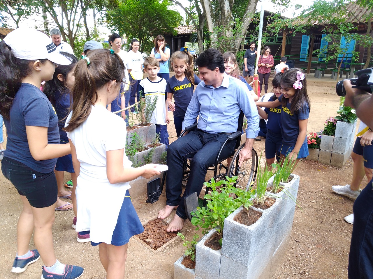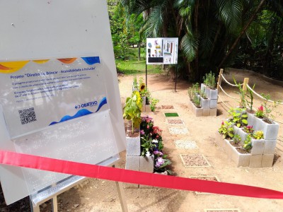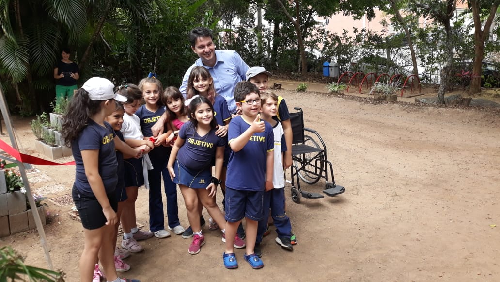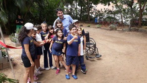 Um grupo de alunos do 2º ano do Ensino Fundamental do Colégio Objetivo (Unidade Centro) inaugurou na manhã desta terça-feira (19) um espaço acessível voltado ao público infantil no Parque da Biquinha, intitulado projeto “Direito de Brincar – Acessibilidade à Inclusão”. O evento contou com a presença do secretário do Meio Ambiente, Parques e Jardins (Sema), Maurício Tavares da Mota, que parabenizou as crianças pela iniciativa.