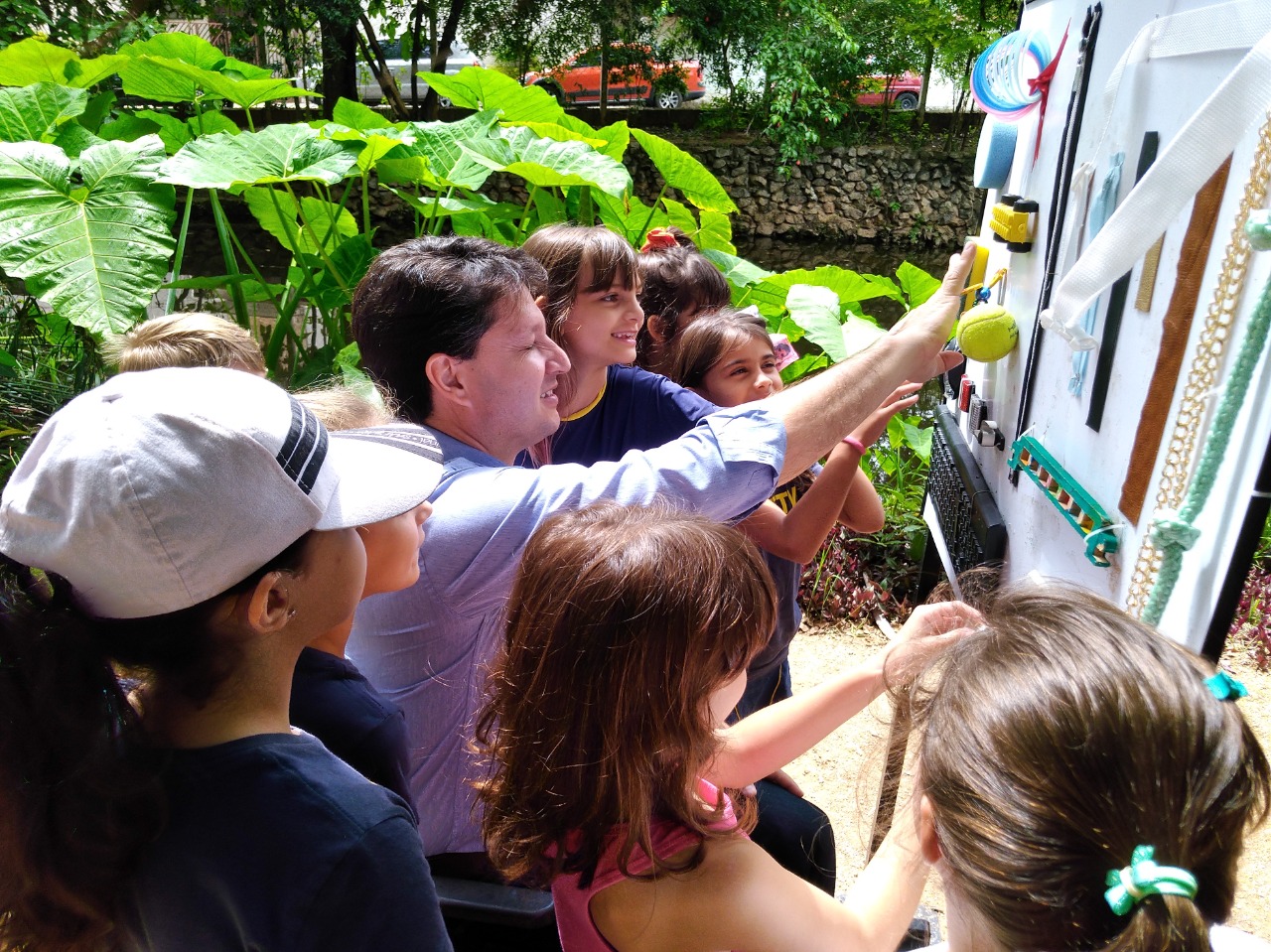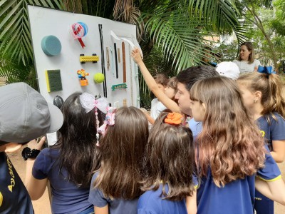 “O projeto ‘Direito de Brincar – Acessibilidade à Inclusão’ partiu da necessidade dos alunos reconhecerem que as crianças têm necessidades diferentes e os mesmos direitos de brincar e saberem se ele é respeitado”, conta a professora Camila. Para isso, desde o primeiro semestre deste ano os alunos fizeram pesquisas e visitaram os parques da cidade. Já no segundo semestre eles colocaram a mão na massa e construíram três espaços adaptados no Parque da Biquinha: o jardim sensorial, o caminho sensorial e um painel sensorial.