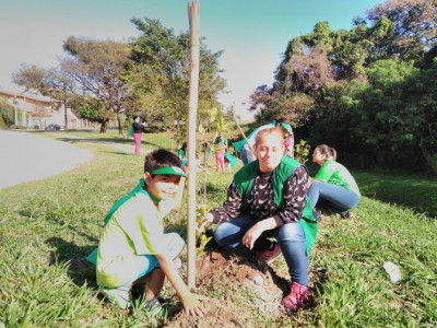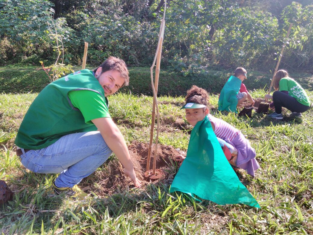 Crianças plantam árvores nativas no Jd. Refúgio