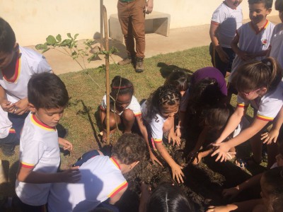 Nesta sexta-feira (4), 270 crianças, entre 4 e 10 anos, matriculadas na Escola Municipal “Jaci Dourado Matielli” plantaram 11 árvores na unidade da rede municipal de ensino, localizada no Jardim Montreal. Os pequenos plantaram 11 exemplares das espécies aroeira pimenteira, aroeira salsa, tataré, ipê roxo, ipê da mata, ipê amarelo, pau-formiga e dedaleiro.