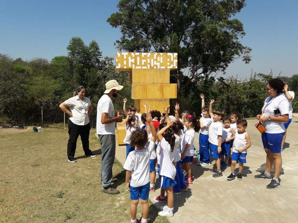 No local, as crianças percorreram espaços importantes do Jardim Botânico, como o Palacete de Cristal. Os estudantes ainda puderam conferir uma das obras do Frestas – Trienal de Artes, que ocupa o Jardim Botânico: o ‘Projeto Imburana’, de Edson Barrus, que agregou mais uma espécie à coleção “Árvores Brasileiras”, com o plantio de uma muda de imburana-de-cambão, além da instalação de um mobiliário no local.