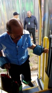 Para começar, os condutores passaram por uma aula prática, na qual foram colocados em situação de passageiros com diferentes características: um recebeu uma venda nos olhos e foi transportado como se fosse uma pessoa com deficiência visual. Outro profissional recebeu pesos no corpo para se sentir como uma pessoa obesa.