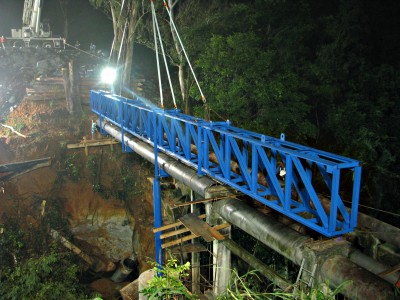Para os serviços prestados pela empresa Engeccal Engenharia e Projetos, a autarquia vai desembolsar R$ 461.396,02, referentes à elaboração do projeto, construção e instalação da treliça metálica de 35 metros de comprimento e peso de 9 toneladas, incluindo o guindaste de grande porte utilizado para içar e colocar a estrutura no local, já com os tubos de reposição do trecho da adutora rompido.