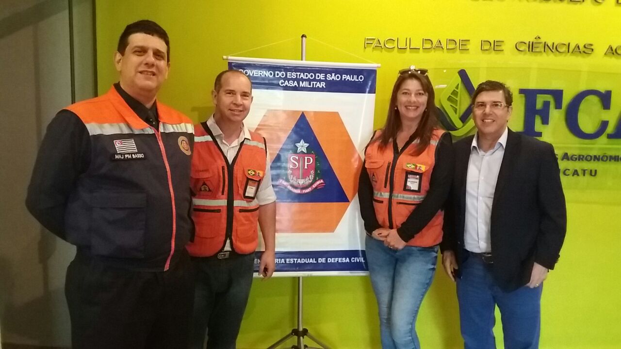 Na foto: Major Marco Antônio Basso, da Defesa Civil Estadual/Casa Militar; Davi Dutra, chefe de seção; Gilmara Eliana Caixeiro, agente da Defesa Civil de Sorocaba; e José Augusto de Barros Pupin, diretor e coordenado geral da Defesa Civil de Sorocaba.