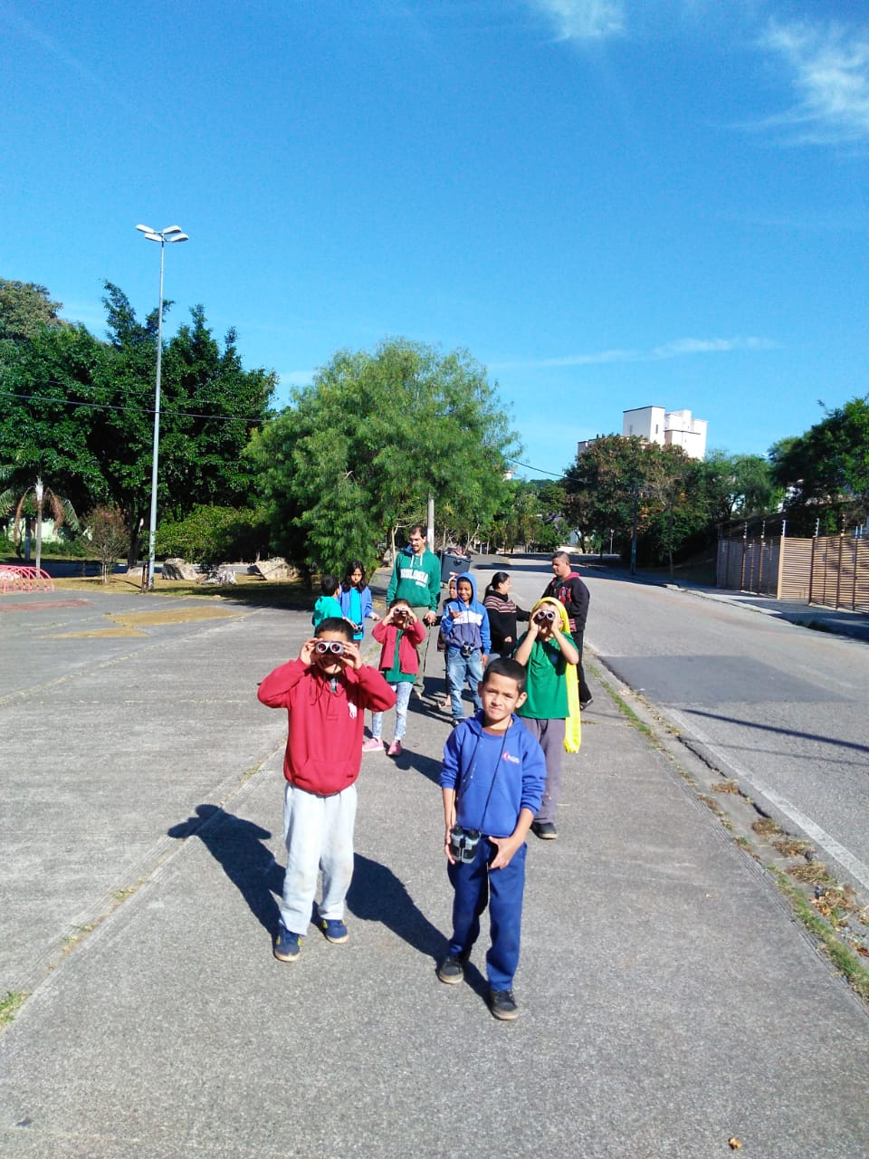 Para começar, a garotada conheceu o caminho que a água faz do parque até chegar na avenida Londres. A olho nu e utilizando binóculos, eles puderam verificar como está a “saúde” do córrego, se havia vegetação (mata ciliar) e se ele estava limpo. “Elas identificaram que existem alguns tipos de lixo, principalmente domiciliar, e o curioso é que existe contêiner, mas mesmo assim tinha lixo jogado fora”, contou a educadora, Viviane Rachid.